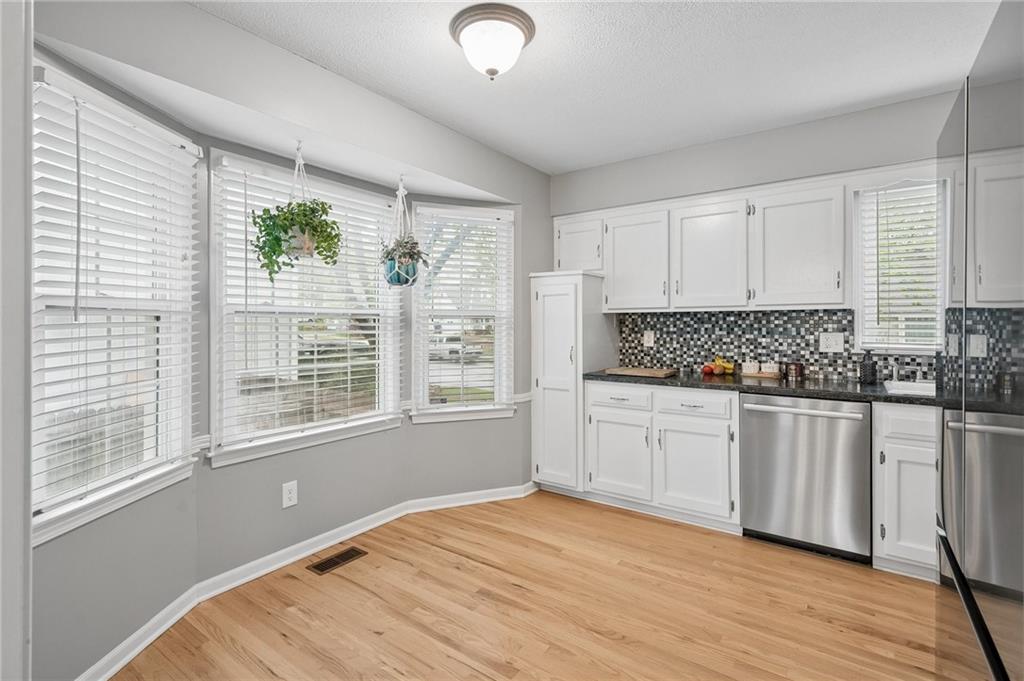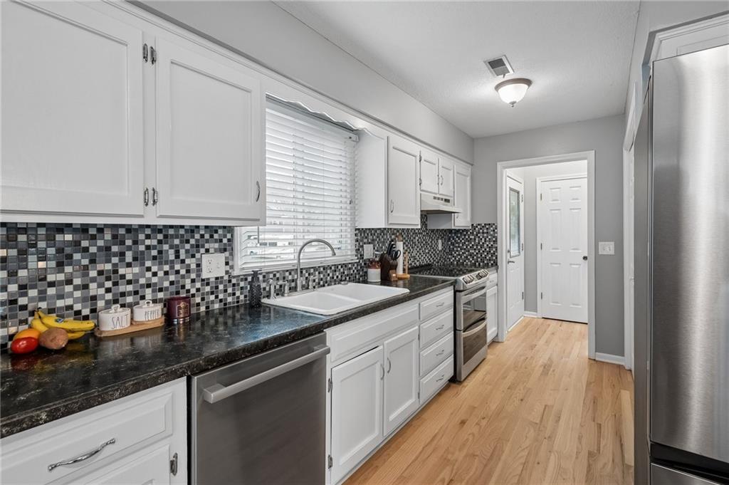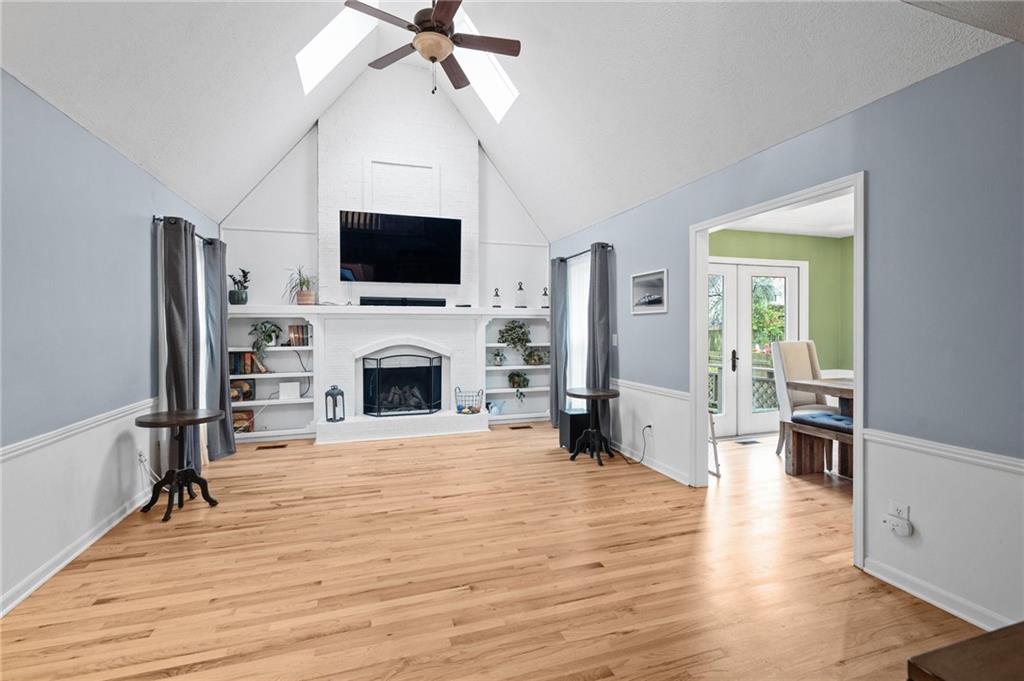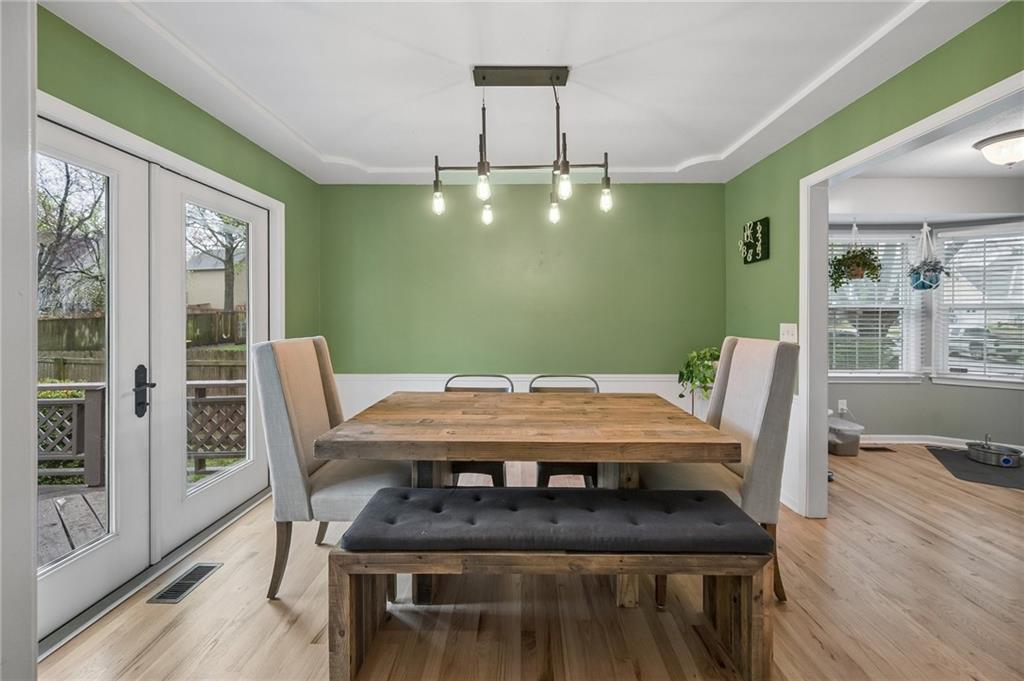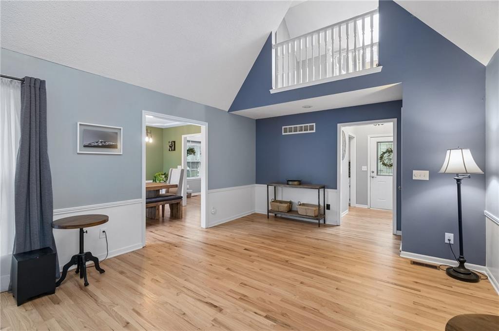 There will be an Open House Saturday April 18th from 12-2. This welcoming 4-bedroom, 2-bath home offers a comfortable, easy-to-live-in layout. A spacious living room with vaulted ceilings centers around a cozy gas fireplace with log inserts, creating an inviting spot for everyday living. The living room flows into a dedicated dining area and a bright, well-kept kitchen featuring newly updated appliances. Newly refinished hardwood floors run throughout the main and upper levels, adding warmth and a fresh, updated feel. The primary bedroom opens directly onto a private deck with a weather-protected storage area below. A second, oversized deck extends from the dining room—an ideal place for casual gatherings or quiet evenings outside. Practical updates add peace of mind, including a brand-new water heater with a transferable warranty and a newer HVAC system. High-speed Google Fiber is available for quick activation, making this move-in-ready home both comfortable and convenient.