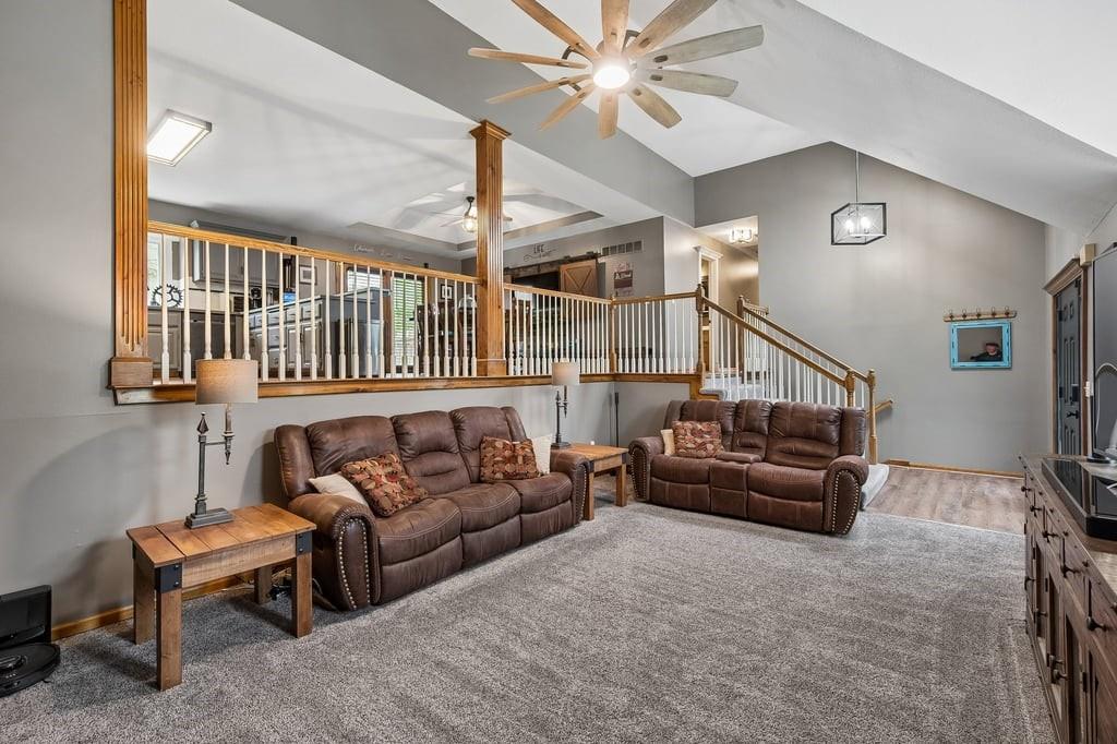 Welcome to easy living in the highly desirable Hills of Shannon community—just minutes from beautiful Smithville Lake! This move-in-ready home has been thoughtfully updated over the past few years, offering peace of mind and modern comfort. Recent improvements include updated lighting and ceiling fans, newer carpet and flooring, HVAC system, roof, gutters, entry doors, and a beautifully newer primary bath. Both bathrooms feature comfort-height toilets for added convenience. The home offers a spacious and inviting layout, including a generous primary suite with a large walk-in closet, along with an additional walk-in closet in the second bedroom—providing excellent storage throughout. At the heart of the home, you’ll find a gourmet kitchen complete with all appliances staying, perfect for everyday living and entertaining. The dining area is enhanced by a custom-built cabinet designed to discreetly conceal your TV and components, blending function with style for a clean, sophisticated look. The lower level expands your living space with a cozy family room and is already plumbed for a future ¾ bath, offering great potential for added value and customization. Step outside to enjoy the fenced yard—ideal for relaxing, entertaining, or pets—and appreciate the overall care and attention this home has received. With its updates, thoughtful features, and prime location near Smithville Lake, this home truly offers the perfect combination of comfort, style, and convenience.