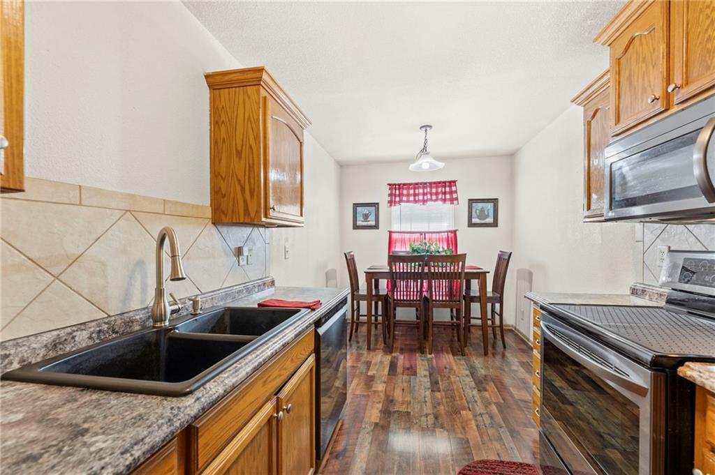 This clean & bright townhome offers 3 bedrooms & 2 full baths! Living room features a fireplace & walks out onto the deck. In the lower level you'll find the 3rd bedroom, full bath, laundry room, storage, & access to 2 car garage. 3rd bedroom could also be used as rec room if needed. The kitchen has an eat-in dining area, a pantry, and ample cabinet space. Newer Carpet throughout home, plus a newer roof. Easy access to highways, parks, and shopping off of Adams Dairy!