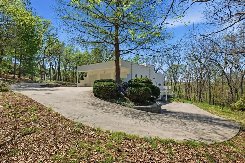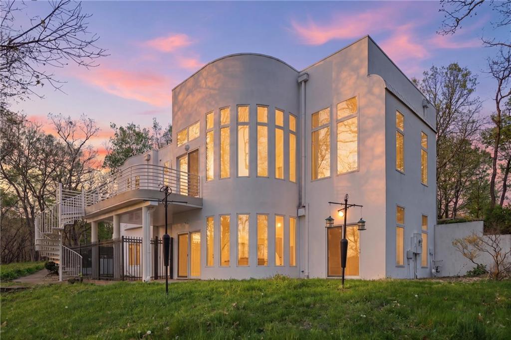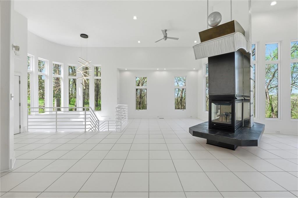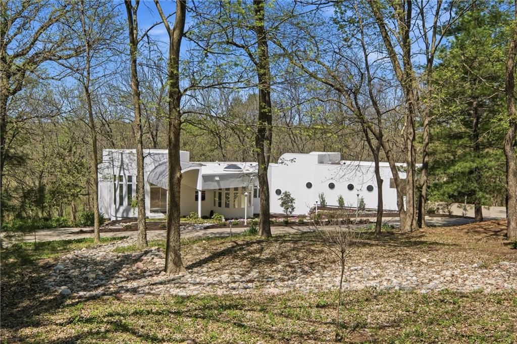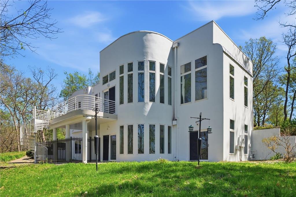 Experience a rare opportunity to own a living work of art. Masterfully designed by world-renowned architect Richard Meier, this custom-built residence is a symphony of light, geometry, and nature. Perched on a secluded cul-de-sac and nestled within a lush canopy of mature trees, the home embodies Meier's signature modernist aesthetic--a striking white silhouette that serves as a pristine canvas for the surrounding forest's vibrant colors. Wrapped in 5.19 acres of mature timber, this custom-built Richard Meier Estate offers the ultimate in architectural distinction and privacy. Designed to harmonize with its wooded surroundings, this contemporary reverse 1.5 story home features, soaring ceilings and an abundance of custom windows that frame breathtaking views from every angle. The main level is anchored by a chef's kitchen, bright and airy, round, eat in kitchen area, separate pantry, main level laundry room, and a grand living area featuring one of three see through fireplaces. Retreat to the primary suite, a true sanctuary with its own see-though fireplace, attached to a private study with patio access,. Relax in spa-like bath with a jacuzzi tub, separate walk-in shower, dual closets, dual vanities, dual toilet closets! The walk-out lower level is an entertainers dream, complete with a second full kitchen, a spacious family room, infrared sauna room, exercise room and seamless access to the outdoor patio and creek. True to the architect's vision, the home features soaring glass walls and expansive open spaces that seamlessly blur the boundary between indoors and out. Every angle is intentionally crafted to capture shifting natural light, creating an environment that feels both ethereal and grounded. This is more than a residence; it is a masterwork for the collector of fine architecture who seeks the ultimate harmony of space and site.