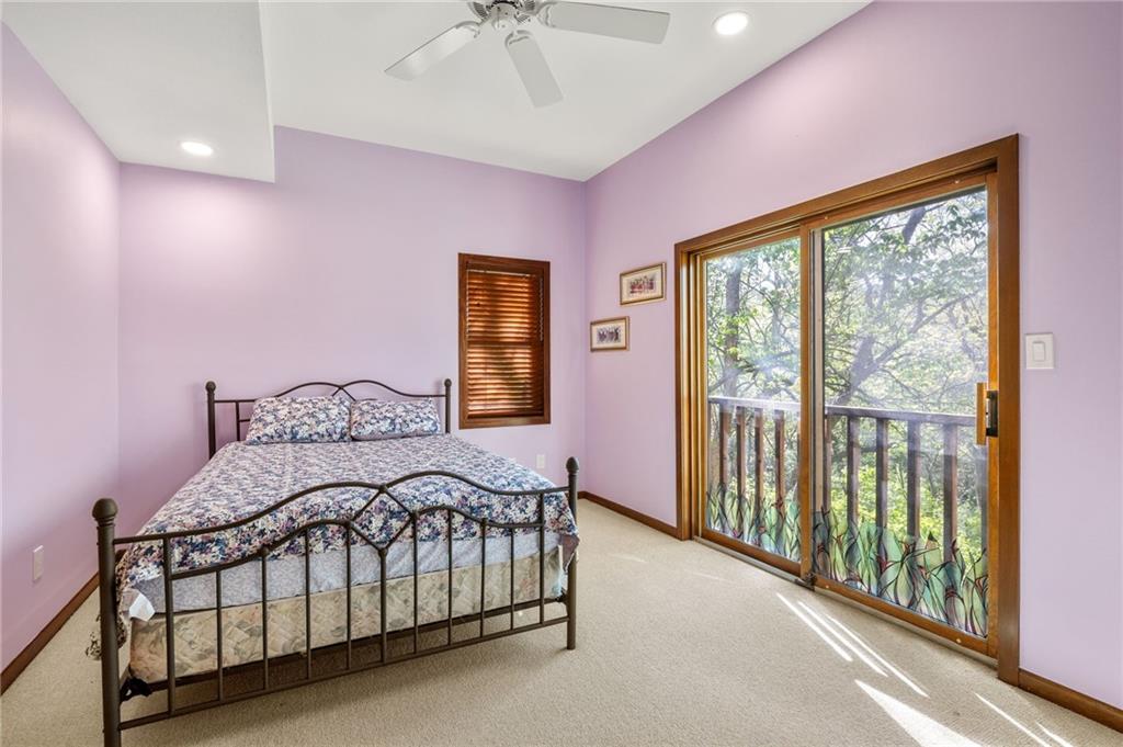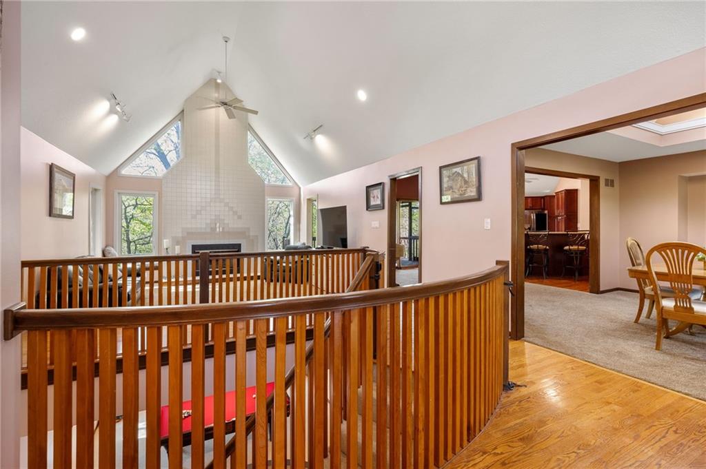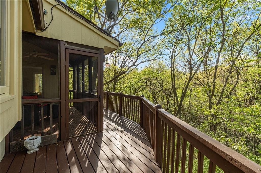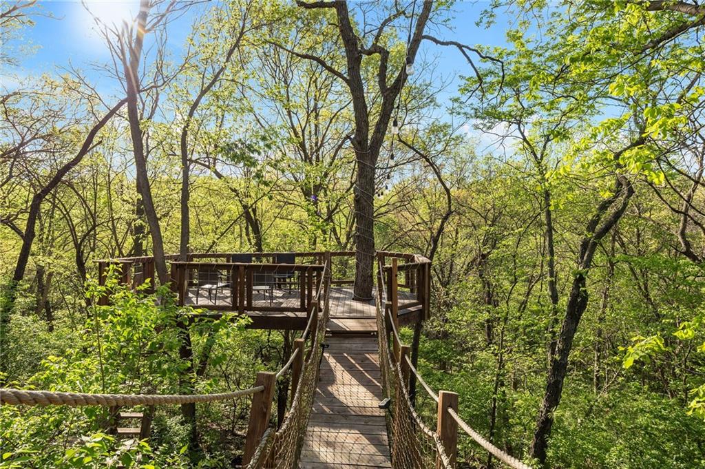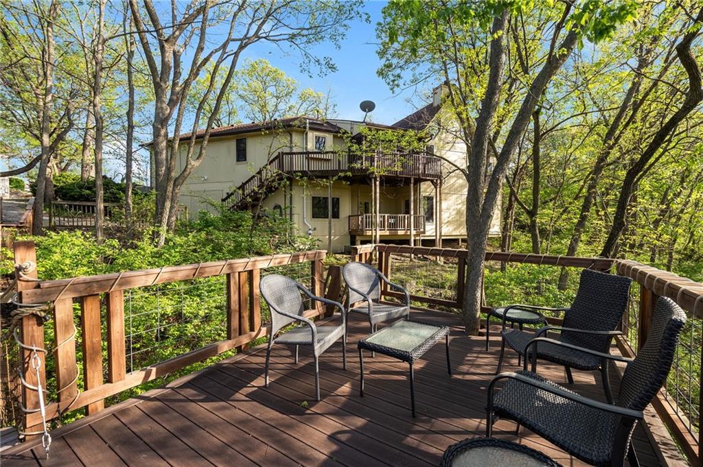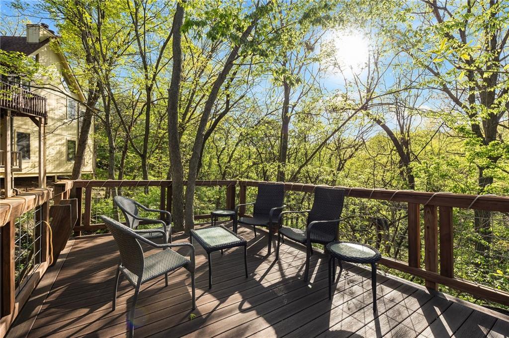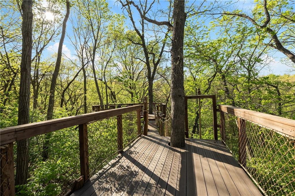 If you’re searching for a truly exceptional home, 7206 Larson is it. Tucked quietly at the end of a small horseshoe street in a quiet neighborhood, this custom-built 1.5 story reverse ranch offers unmatched seclusion and character. Built in 1992 and perfectly maintained, this rare opportunity sits on a beautifully wooded 1.6-acre lot that feels like your own private nature sanctuary. With 4 bedrooms, 3 full baths, and 2 half baths, there’s plenty of space to entertain and unwind. The open flow connects the living area, dining room, and kitchen while vaulted ceilings and large windows showcase sweeping views of the park-like backyard. Step outside to enjoy two decks overlooking mature trees and wildlife — deer, turkey, and birds are frequent guests. A custom treehouse, completed in 2022, adds even more charm and a sense of retreat. The primary suite on the main level features a remarkable en-suite bath designed for two, with dual vanities, dual water closets, separate walk-in closets, and a shared jetted tub and walk-in shower connecting the spaces. Down the curved staircase, discover a lower level built to impress — an indoor atrium with turf and stone accents opens into a spacious family room with a gas fireplace and three additional bedrooms surrounded by private wooded views. Ample storage and thoughtful design make every corner functional and inviting. Recent updates include a new Air Conditioning unit (2025), tankless water heater, water softener, toilets, faucets (2021), kitchen upgrades (2018), and garage resealing (2020). This home stands as one of the most unique and well-kept properties in the area. Also to note the property is in close proximity to the Rock Island Trail. Rarely does a home blend craftsmanship, privacy, and location like this. Schedule your private showing today before this extraordinary home is gone.