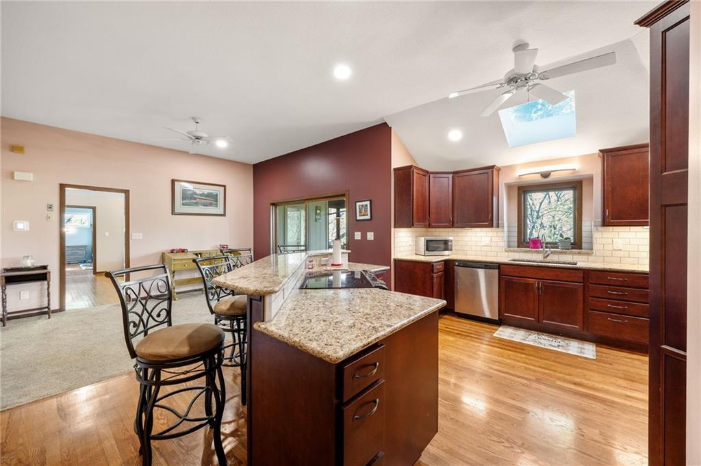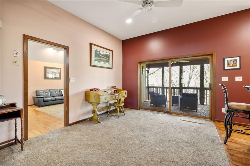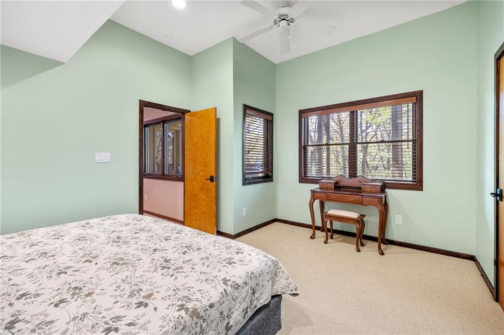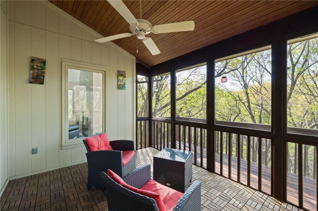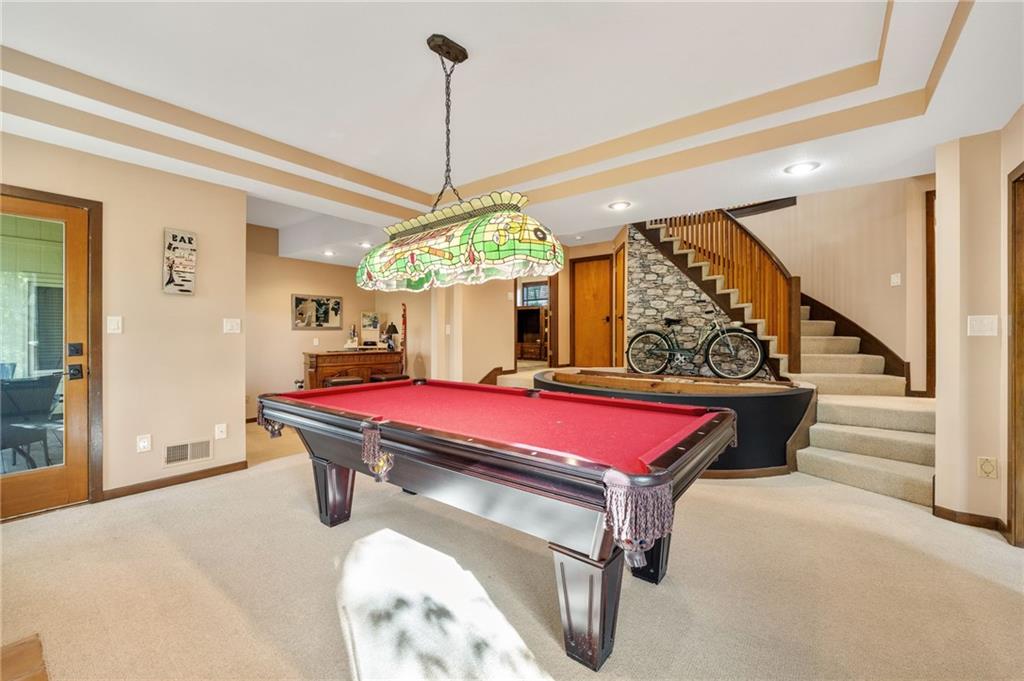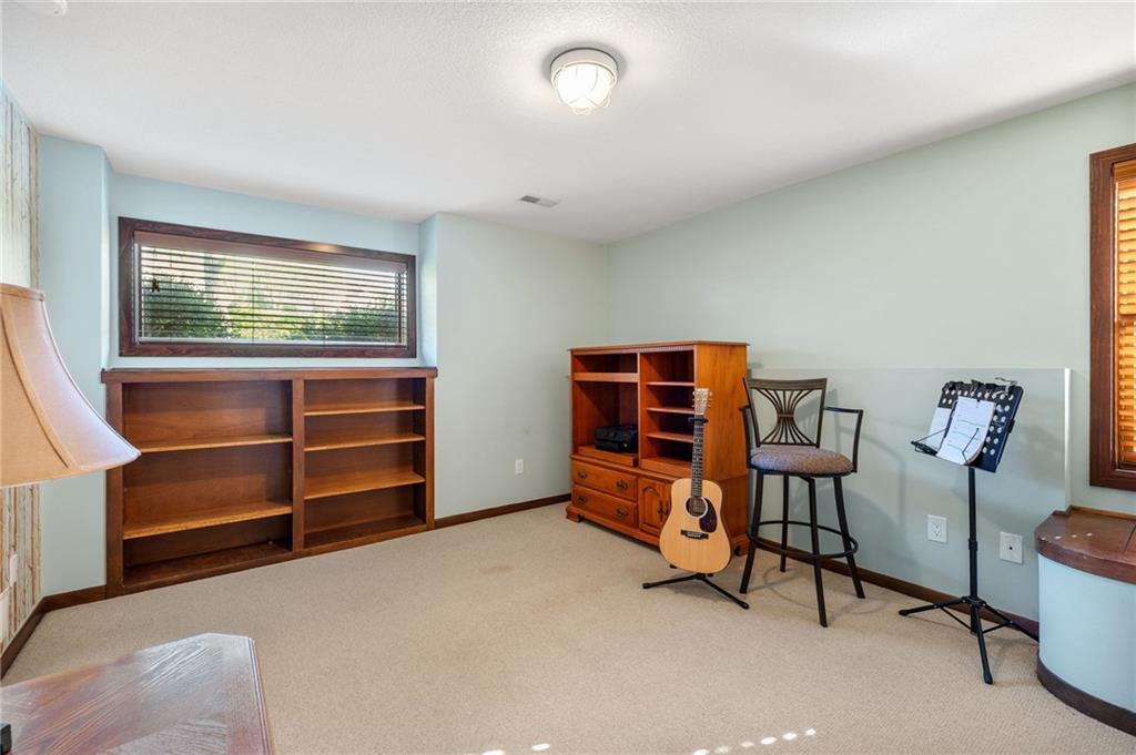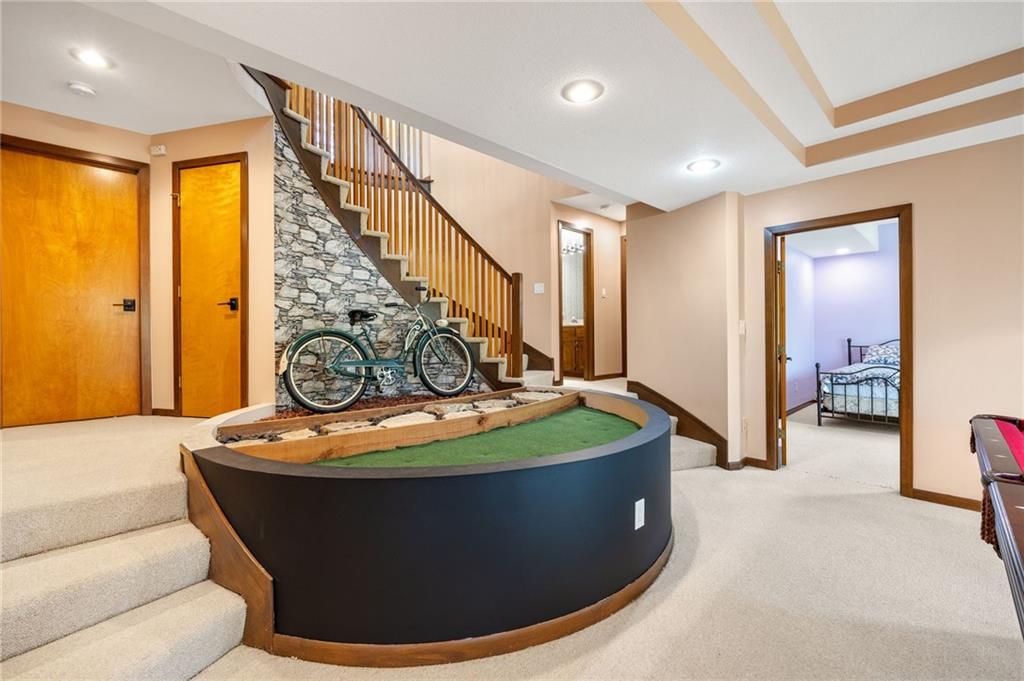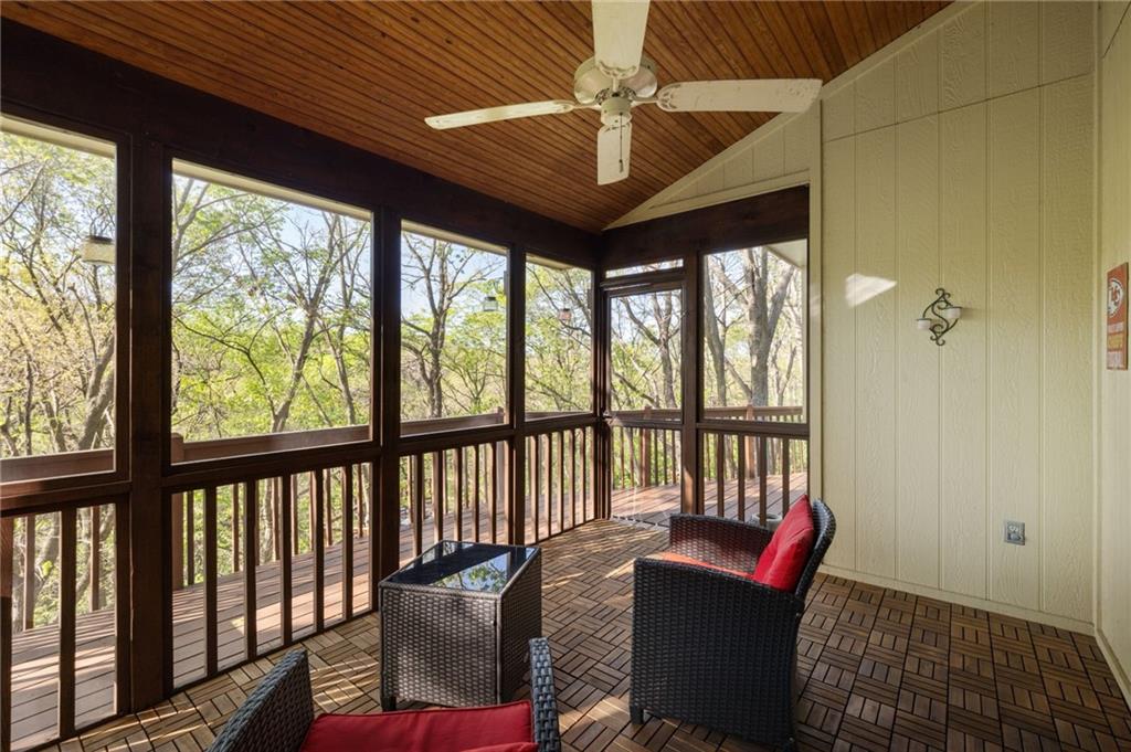 If you’re searching for a truly exceptional home, 7206 Larson is it. Tucked quietly at the end of a small horseshoe street in a quiet neighborhood, this custom-built 1.5 story reverse ranch offers unmatched seclusion and character. Built in 1992 and perfectly maintained, this rare opportunity sits on a beautifully wooded 1.6-acre lot that feels like your own private nature sanctuary. With 4 bedrooms, 3 full baths, and 2 half baths, there’s plenty of space to entertain and unwind. The open flow connects the living area, dining room, and kitchen while vaulted ceilings and large windows showcase sweeping views of the park-like backyard. Step outside to enjoy two decks overlooking mature trees and wildlife — deer, turkey, and birds are frequent guests. A custom treehouse, completed in 2022, adds even more charm and a sense of retreat. The primary suite on the main level features a remarkable en-suite bath designed for two, with dual vanities, dual water closets, separate walk-in closets, and a shared jetted tub and walk-in shower connecting the spaces. Down the curved staircase, discover a lower level built to impress — an indoor atrium with turf and stone accents opens into a spacious family room with a gas fireplace and three additional bedrooms surrounded by private wooded views. Ample storage and thoughtful design make every corner functional and inviting. Recent updates include a new Air Conditioning unit (2025), tankless water heater, water softener, toilets, faucets (2021), kitchen upgrades (2018), and garage resealing (2020). This home stands as one of the most unique and well-kept properties in the area. Also to note the property is in close proximity to the Rock Island Trail. Rarely does a home blend craftsmanship, privacy, and location like this. Schedule your private showing today before this extraordinary home is gone.
