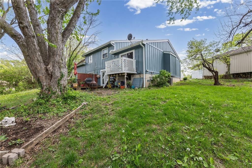 Step into this fully remodeled, 3 bedroom townhouse located in Raytown on a quiet cul-de-sac. Minutes away from schools, Longview Lake, shopping, I-435 and 350/Blue Pkwy access, this home's location is convenient. This home includes updated luxury vinyl plank flooring, painted cabinets, and a spacious back yard. Basement bedroom has outside access. Back yard is partially fenced and is allowed to be fully fenced. Working solar panels keep electric bill under $30 a month with owners current usage. Mature trees in the back yard provide privacy and relaxing view when enjoying the back deck space. Schedule your showing today!