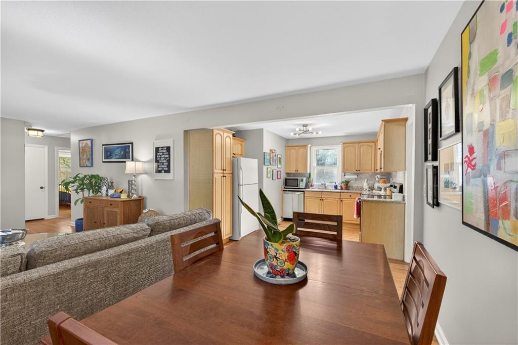 Turn-key, stylish, and packed with updates—this beautifully renovated ranch in Glenwood Heights is ready to impress! From the moment you arrive, you’ll notice the fresh landscaping, inviting curb appeal, and pride of ownership throughout. Inside, refinished hardwood floors and abundant natural light create a warm, welcoming feel. The updated kitchen is a standout with granite countertops, custom cabinetry, stainless steel appliances, and an open flow to the living room and breakfast nook—perfect for entertaining or everyday living. Just off the kitchen, the cozy family room features new carpet and provides convenient access to the backyard, garage, and lower level. All bedrooms offer hardwood floors and great closet space, while the fully remodeled bathroom shines with herringbone tile flooring, a quartz vanity, and a beautifully tiled shower/tub combination. Step outside to a private, fully fenced backyard with a concrete patio—ideal for relaxing evenings, pets, or gatherings. The unfinished basement provides excellent storage and future finishing potential, with major system updates already completed for peace of mind. Located in the highly sought-after Shawnee Mission School District, this home offers quick access to nearby parks and trails like Roe Park and Sapling Grove Park, along with convenient shopping, dining, and grocery options just minutes away. Easy highway access makes commuting a breeze. A perfect blend of location, updates, and livability—this one is a must-see!