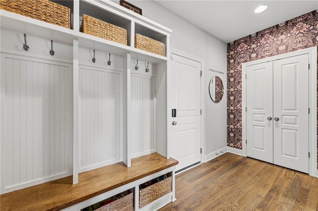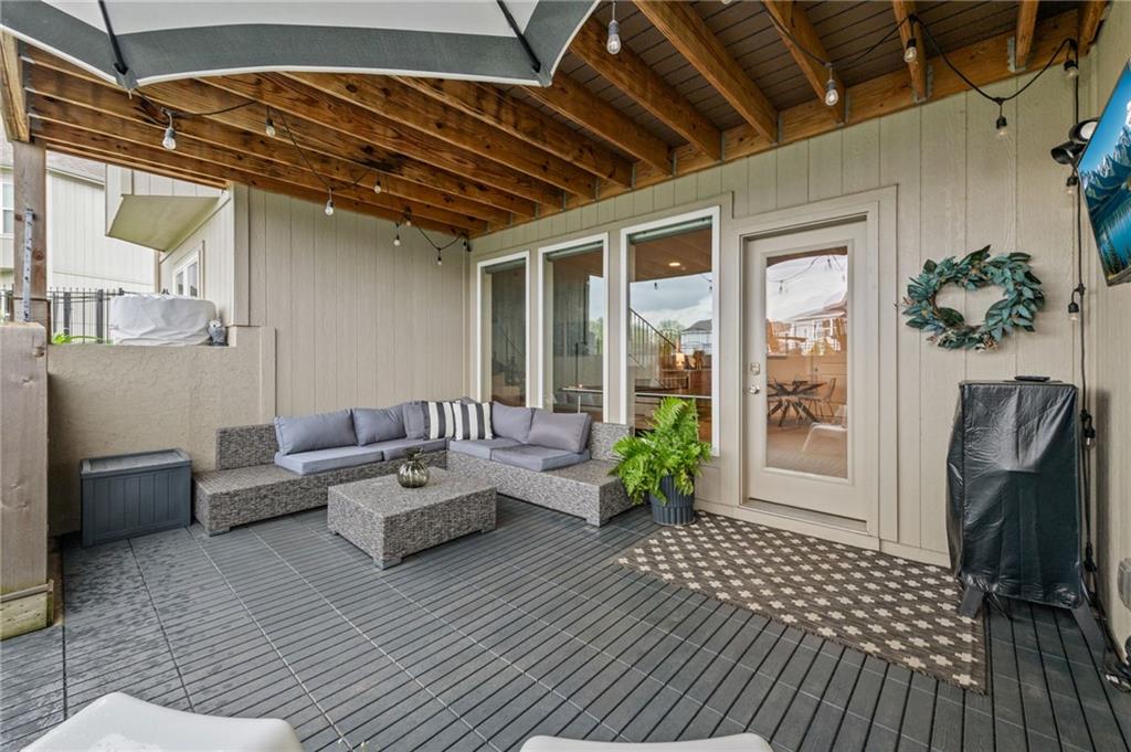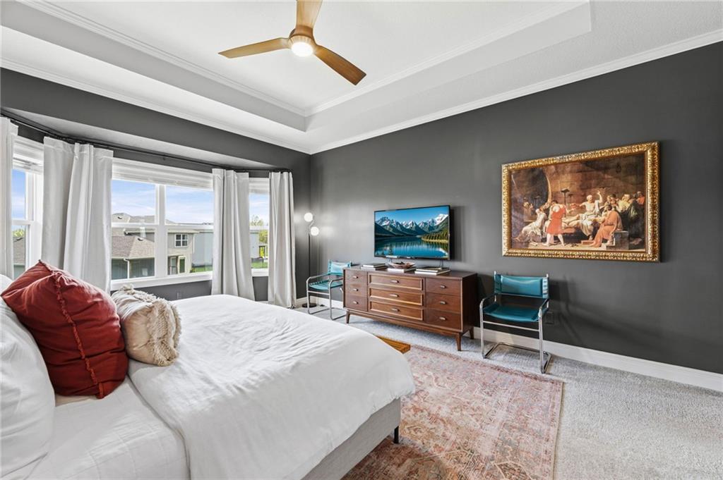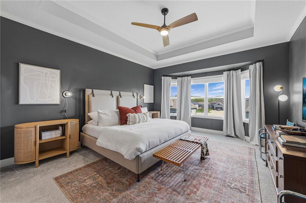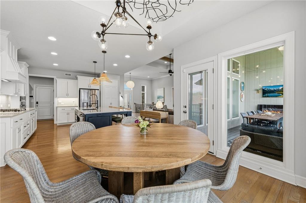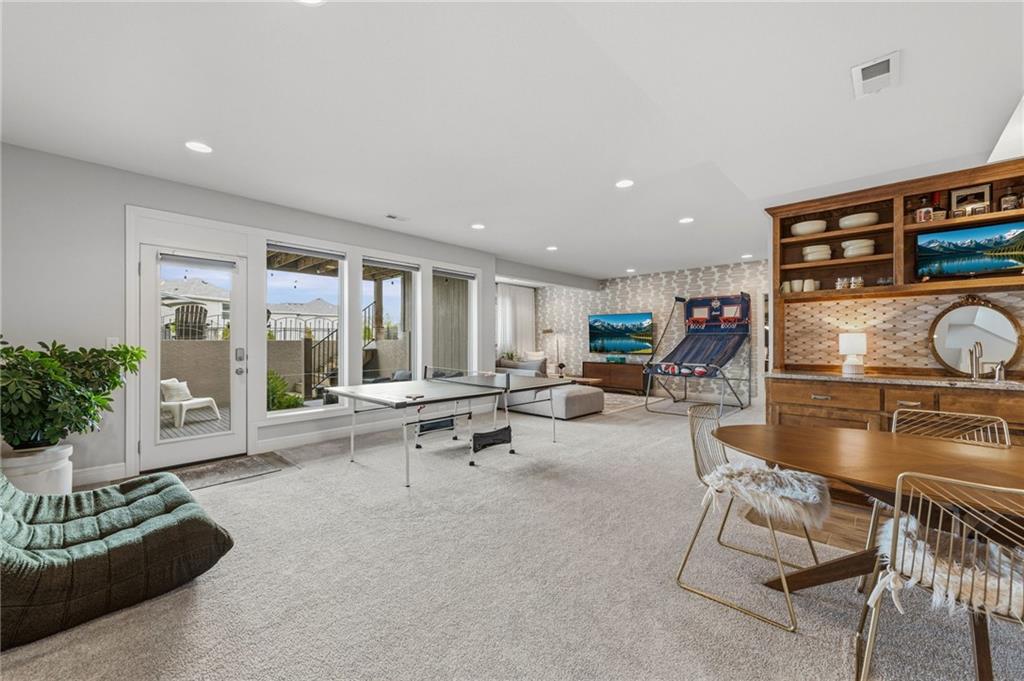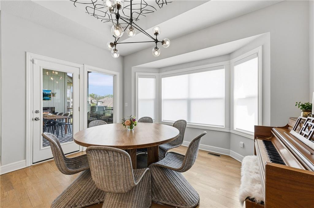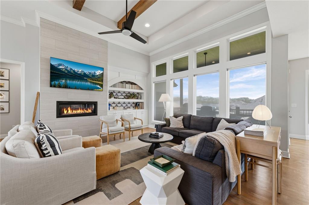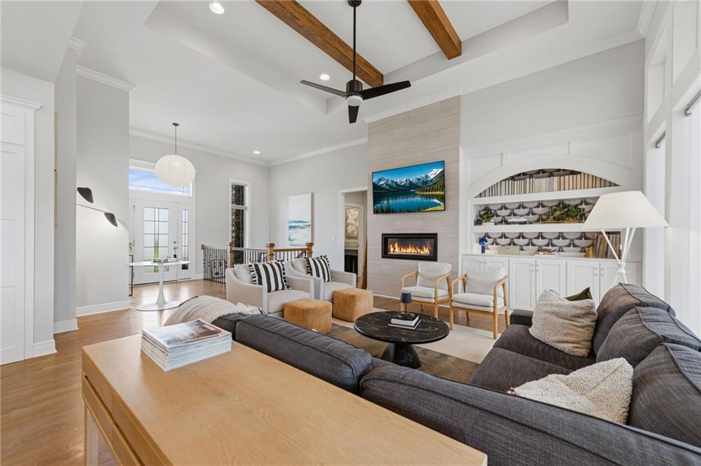 DESIGNER'S DREAM !!! The Morgan by New Mark Homes situated in Cider Mill, south of The National in Parkville Missouri ! 5 bedrooms / 3 baths / 3 car garage ! ***NEW ROOF, GUTTERS AND DOWNSPOUTS*** Roof completed by 4/17!!! This a TRUE SHOW HOME w/ countless upgrades to lighting & decor by these owners! Designer Wallpaper abounds adding accent walls & tasteful design! Custom window coverings in every room. Owners have added ADT Security System, Screened in Deck, Front Landscape & Hardscape, Fenced Backyard, Patio Lighting, Deck Fireplace (electric), there is so much more! The Open floor plan with Great Room Fireplace & beamed ceilings open up to the white cabinets & oversized island w/ quartz countertops & designer backsplash. The drop space from the garage is perfectly situated. Primary master suite has double vanity, tub & walk in shower w/ glass door. Closet is spacious and opens up into the laundry room. 2nd bedroom on main level is right off the kitchen w/ a 3/4 bath. Lower level has wet bar w/ lots of entertaining space for ping pong & watching movies! Closet and storage space is amazing .... the walk out walk up feature allows natural light! There is a separate sump pump for the LL patio. This is an amazing home and definite pride of ownership ! This area has a nice community pool, close proximity to Downtown Parkville, Creekside, Graden Elementary, Lakeview Middle School, 435, KCI, I-29 and so much more!