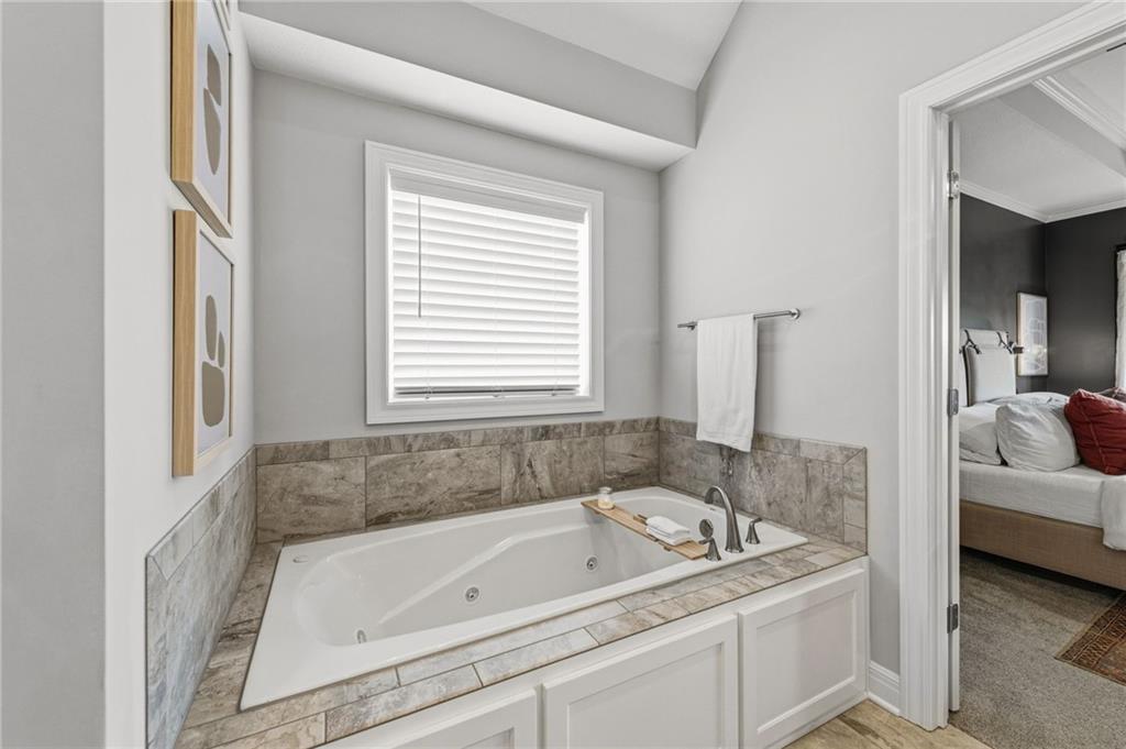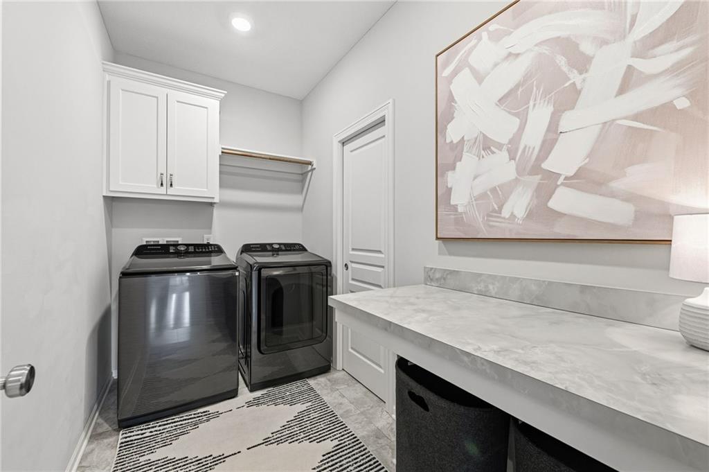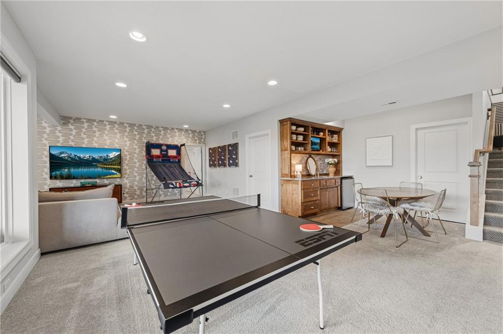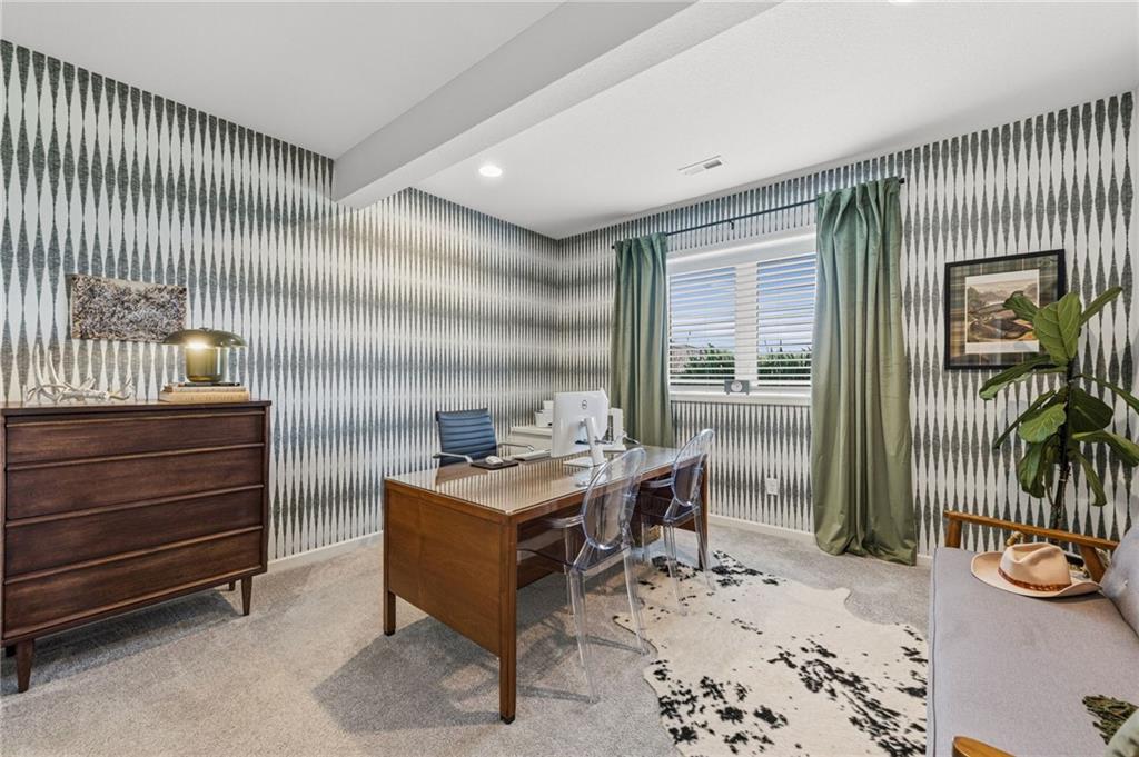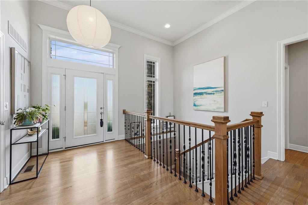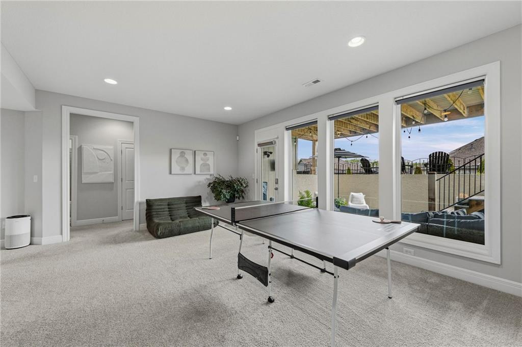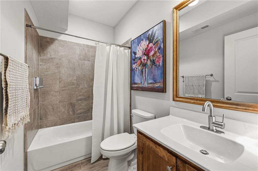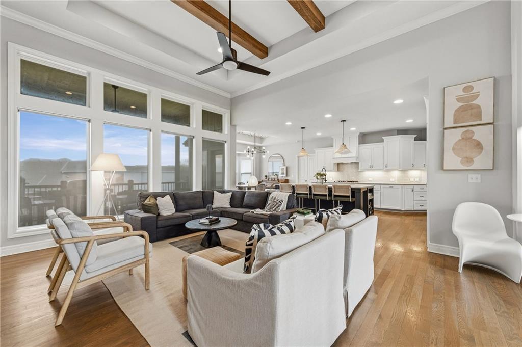 DESIGNER'S DREAM !!! The Morgan by New Mark Homes situated in Cider Mill, south of The National in Parkville Missouri ! 5 bedrooms / 3 baths / 3 car garage ! ***NEW ROOF, GUTTERS AND DOWNSPOUTS*** Roof completed by 4/17!!! This a TRUE SHOW HOME w/ countless upgrades to lighting & decor by these owners! Designer Wallpaper abounds adding accent walls & tasteful design! Custom window coverings in every room. Owners have added ADT Security System, Screened in Deck, Front Landscape & Hardscape, Fenced Backyard, Patio Lighting, Deck Fireplace (electric), there is so much more! The Open floor plan with Great Room Fireplace & beamed ceilings open up to the white cabinets & oversized island w/ quartz countertops & designer backsplash. The drop space from the garage is perfectly situated. Primary master suite has double vanity, tub & walk in shower w/ glass door. Closet is spacious and opens up into the laundry room. 2nd bedroom on main level is right off the kitchen w/ a 3/4 bath. Lower level has wet bar w/ lots of entertaining space for ping pong & watching movies! Closet and storage space is amazing .... the walk out walk up feature allows natural light! There is a separate sump pump for the LL patio. This is an amazing home and definite pride of ownership ! This area has a nice community pool, close proximity to Downtown Parkville, Creekside, Graden Elementary, Lakeview Middle School, 435, KCI, I-29 and so much more!