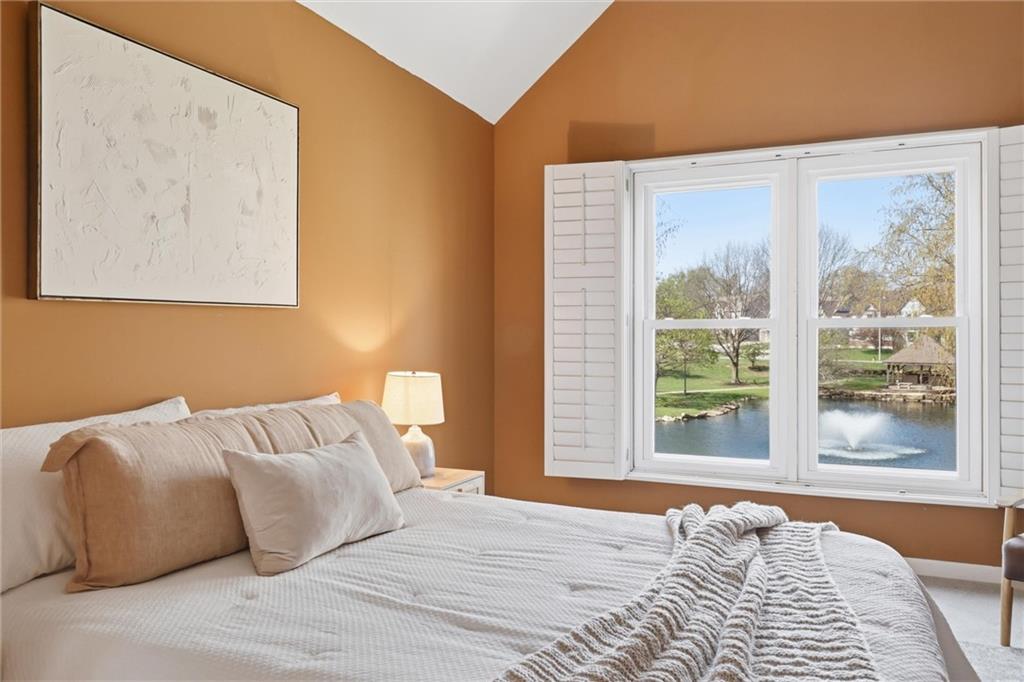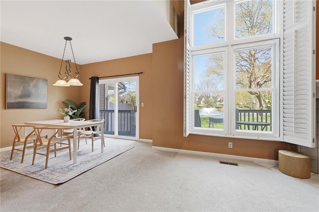 Nestled in the quiet, established community of Leawood Falls, this maintenance provided townhome offers a fantastic layout with large room sizes, high ceilings, and abundant natural light. The main level features a large entryway connecting garage, laundry, 1/2 bath and kitchen, in a very efficient floor plan. The living room, kitchen with breakfast nook and formal dining area have great views of the pond. The spacious living room offers double-height ceilings and feature a fireplace. The second story provides a sprawling primary suite with high ceilings and gorgeous pond views. This well maintained home is a pristine blank canvas ready for your personal touches. The second suite also has high ceilings, walk-in closet and full bathroom with tub/shower combo. The 2-car garage is wide and long to fit most vehicles and some additional storage. The unfinished basement can bring over 500SF of living space with a 3rd bedroom, and is already stubbed for a 3rd full bath. Newer roof, windows, furnace, garage door & opener, driveway and retaining wall, all within the last 5 years. This great space and sweet location price well under $400K in Leawood is unreal! Enjoy the ultimate lock-and-leave lifestyle with a comprehensive HOA that handles the exterior maintenance for you. Located just minutes from the best shopping and dining at Town Center. To the best of seller's knowledge, $302/month HOA fees includes: Lawn Maintenance and common area plants/trees maintenance and replacement Roof (repair), Concrete driveway maintenance, Exterior building painting, Insurance (covering building structure, does not include belongings or inside of studs), Water for sprinkler system, Snow Removal >2 inches, Gutter/downspouts repairs and maintenance. Amenities include: Club House, Exercise Room, Pool, Sport Court (Tennis/basketball courts), Pond -Catch and Release fishing, Walking Trails, Fountain, Trash service. *HOA docs and inclusions to be reviewed by buyers.
