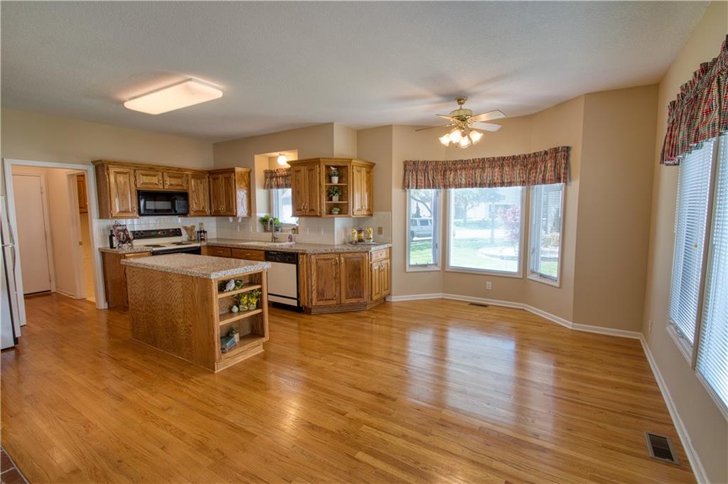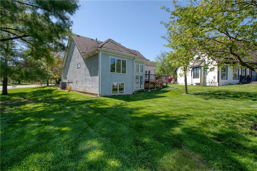 Beautiful 3-bedroom, 3.5-bath patio/villa home situated on a desirable corner lot in Leawood! This home offers an open floor plan with a main-level primary suite for convenient living, with a second bedroom on the main level. The primary suite features tile flooring in the bathroom and a relaxing soaking tub. The kitchen features hardwood floors, granite countertops, and a center island, opening seamlessly to the main living area, perfect for entertaining. A double-sided gas fireplace sits between the Hearth Room and Living Room. Step outside to a composite deck overlooking a lush yard. The finished walk-up basement includes an additional bedroom, bathroom, spacious family room, and ample storage. Two-car garage completes the home. Laundry is on the main level. This property offers incredible potential to make it your own in a highly sought-after location.
