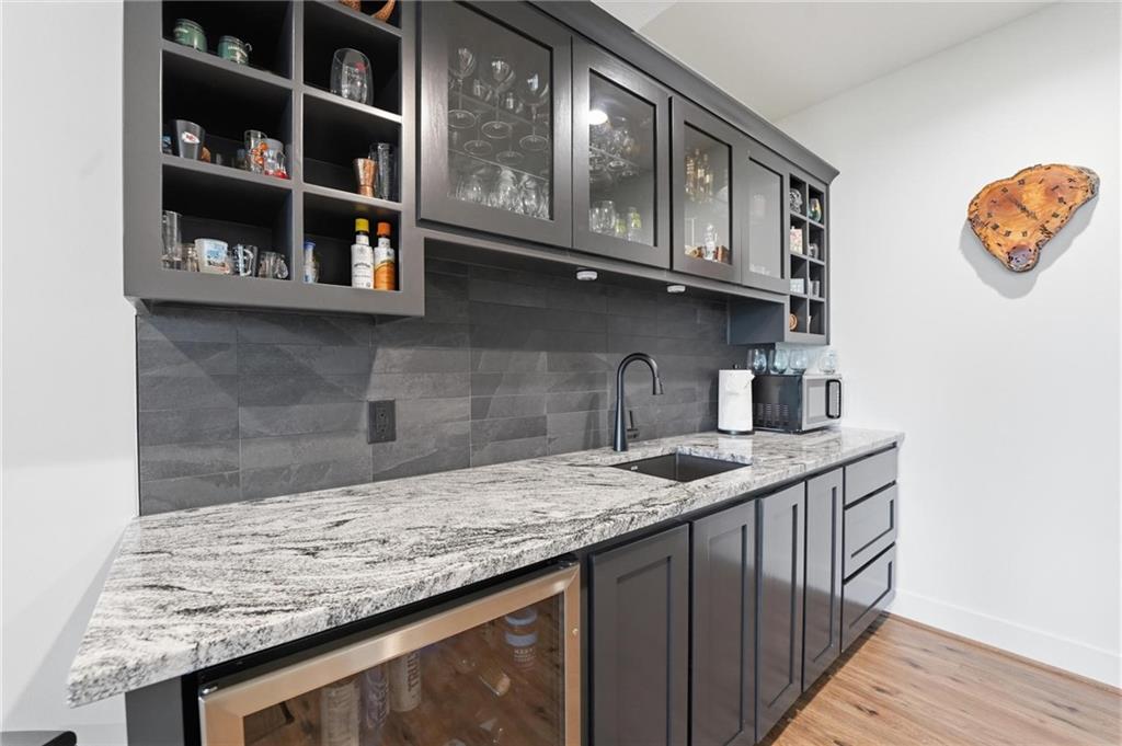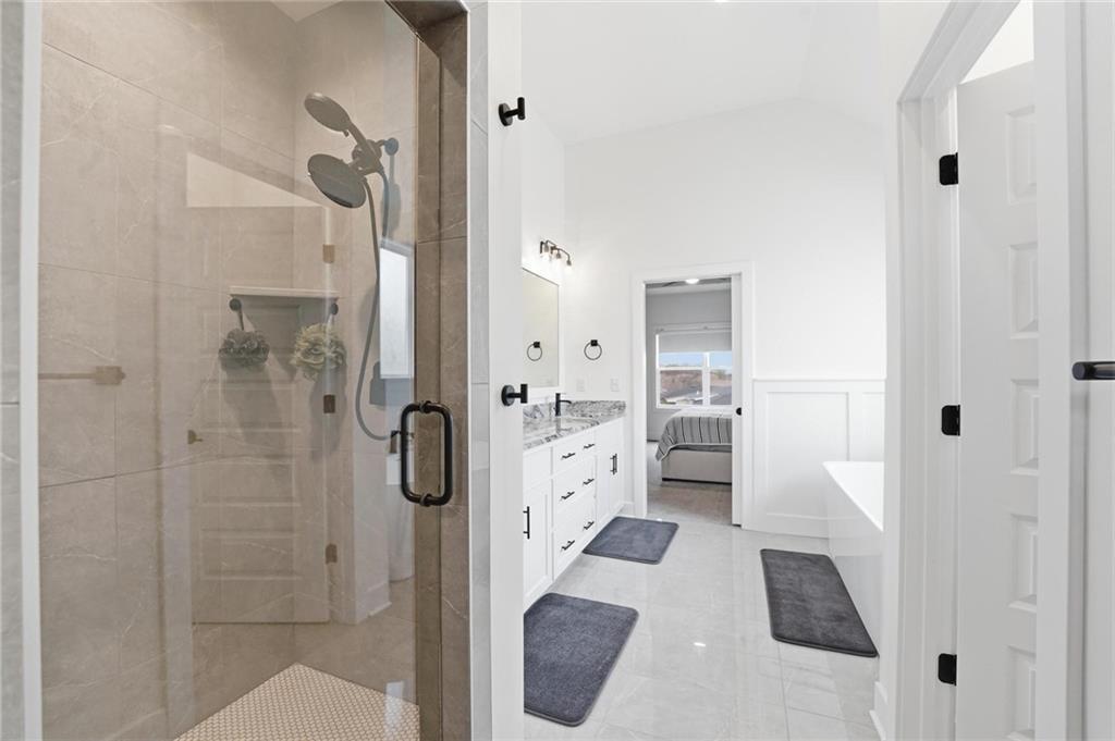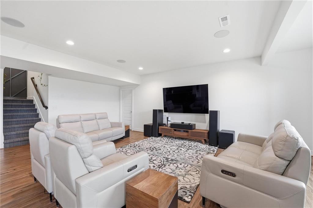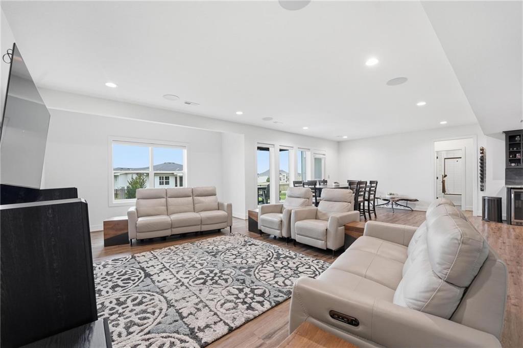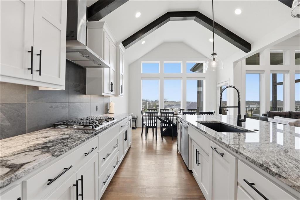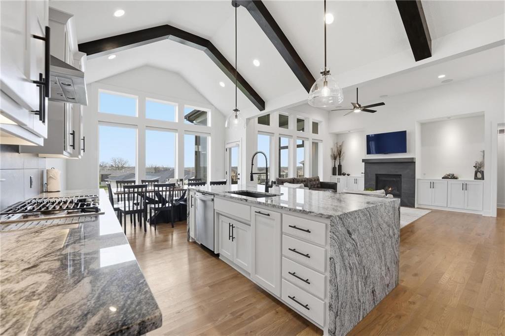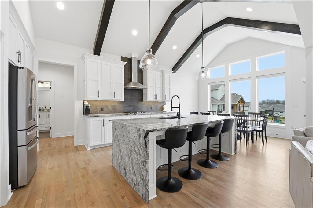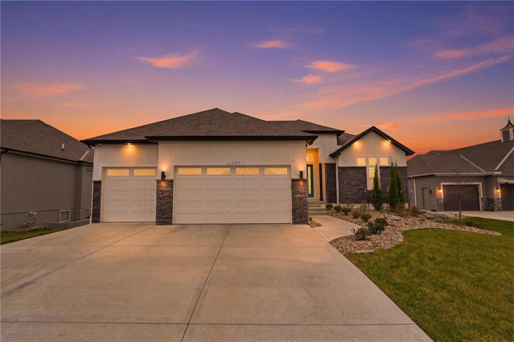 A MASTERPIECE OF MODERN LIVING w ALL THE UPDATES. Recreating this home today would exceed the $800s, making this impeccably maintained 2023 New Mark Homes build an extraordinary opportunity. Skip the uncertainty of construction timelines, rising rates, & fluctuating labor costs—this home feels better than new & loaded w designer-level upgrades throughout. Step inside to an elegant, light-filled 4-bedroom, 3-bath modern home where every finish has been thoughtfully elevated. The chef’s kitchen showcases GE Profile stainless appliances, upgraded granite surfaces throughout the entire home, w a striking waterfall island that anchors the space. Enjoy soft-close cabinetry, under-cabinet lighting, generous walk-in pantry, & electronic blackout blinds for effortless comfort. The primary suite is a retreat of its own—featuring an oversized soaking tub, dual vanities, a stunning floor-to-ceiling tiled shower, & a spacious walk-in closet w direct access to the main-level laundry. Rich hardwood floors, upgraded lighting, hardwired security system, surround sound on each level independently wired of each other (main level surround sound extends to deck) making it an entertainers dream. The expansive garage impresses w epoxied floors, fresh paint, smart garage doors, and fits a full-size Truck. The LL continues the luxury experience w LVP flooring, a stylish granite-topped bar, 2 additional bedrooms, a full bath, & large unfinished area enhanced w a sound-dampening system—ideal as a storm shelter or future expansion. Outside, enjoy premium upgrades including a Smart Rainbird irrigation system, buried downspouts, & a 4' metal fence. Located in the highly coveted Stonebridge Community, residents enjoy resort-style amenities: 4 pools (zero-entry, lap, & kiddie pool w slide), 4 playgrounds, 2 pickleball courts, 2 tennis courts, 3 clubhouses, 2 fitness centers, & 12 miles of scenic walking trails. Subdivision details: rodrock.com/communities/olathe-ks/stonebridge-park