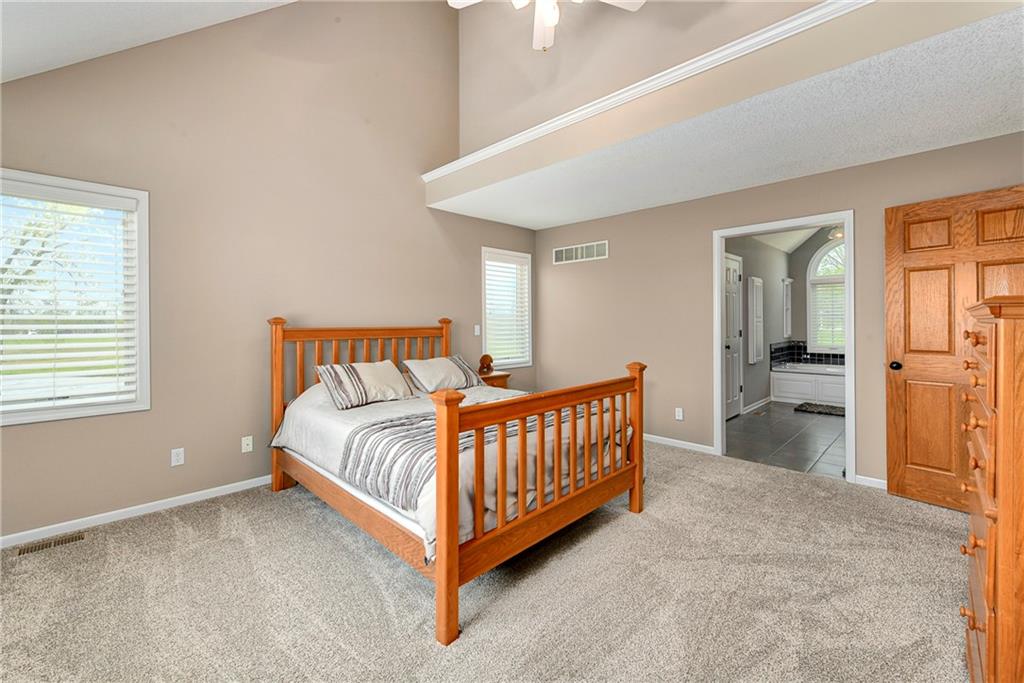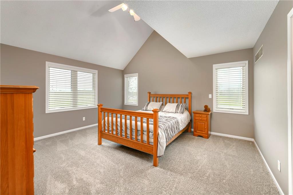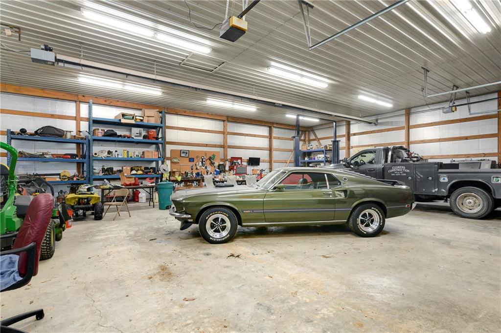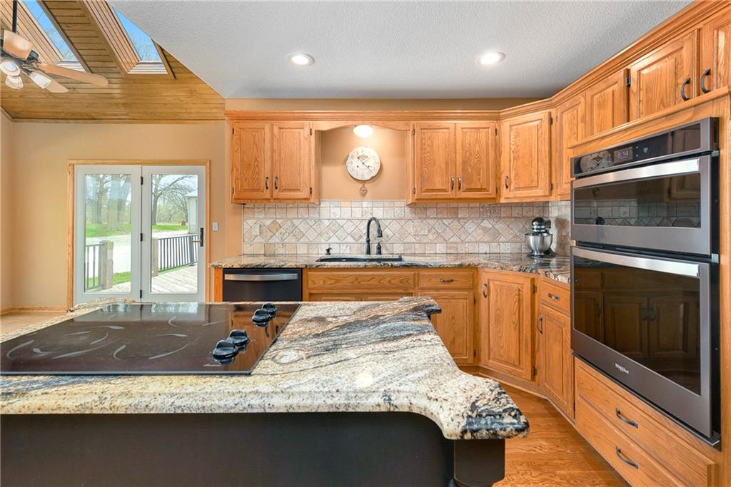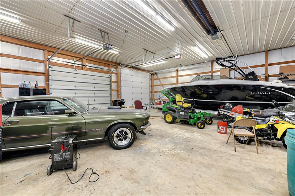 Escape to the peace of the countryside in this custom built home on 24 acres. A fully stocked pond with Bass, Crappies, Perch, Bluegill, and Catfish provides the perfect place to relax while watching the sun set. The entry opens to a large great room with heat circulating wood burning fireplace and 13' ceilings with beautiful crown moulding. There are two dining areas (one is currently being used as an office). The kitchen has many cabinets, pantry, island with cooktop, Granite countertops, tile backsplash, and wood floor. The primary suite is large and includes the following amenities - a double vanity, shower, whirlpool tub, linen closet, and walk-in closet. The two upstairs bedrooms are generous size with a shared bathroom. There is an office that could be converted into another bedroom/play area/craft room - the options are endless. There is a storage area above the garage off one of the bedrooms. The finished walk-out lower level has so much to offer with large family room, gym/exercise room (could be converted into a bedroom), full bath (with walk-in closet for guests), storage area (16.11x11.6), and 3rd car garage (14.3x11.2). The home was remodeled in 2008 with new vinyl siding, windows, roof, granite countertops, & refinished hardwood floors. The 60x40 outbuilding includes 100amp electrical service, insulated interior, concrete floor, water, radiant heat, pegboard/workbench, large overhead door for RV, & BONUS - 9,000 lb vehicle lift. There is a lean-to (40x12.6) on the back of the outbuilding. Located just a little under 10 minutes from I-70, this property offers the perfect balance of rural privacy and convenient access to town and Kansas City. Inspections welcome but selling "AS IS". The two gas tanks on the East side of the outbuilding are not staying.