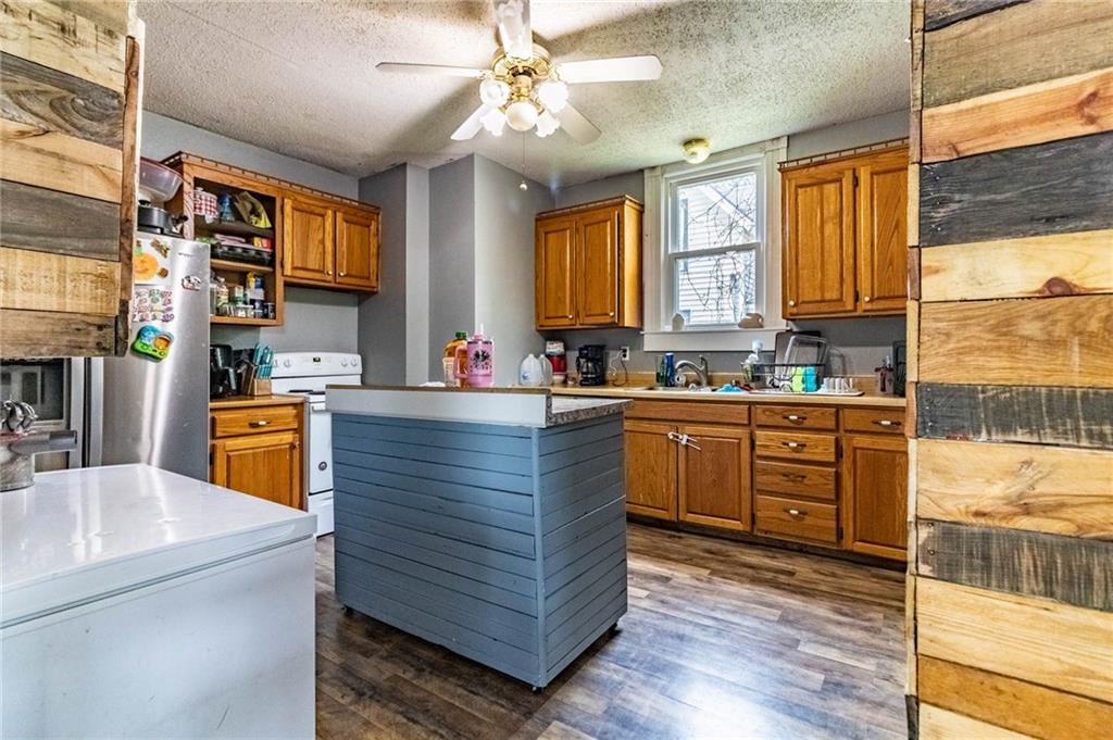 Beautiful 4 bed, 1.5 bath two-story home full of timeless character, ideally located just five blocks from downtown Windsor. Enjoy relaxing on the large wraparound covered front porch, perfect for morning coffee or evening unwinding. Inside, you’ll find newer replacement windows that flood the home with natural light, highlighting the original window and baseboard trim that showcase its authentic charm. The living space features a stunning original brick wood-burning fireplace, adding warmth and classic appeal. The kitchen offers beautiful solid wood cabinetry and a window that brings in even more natural light, creating a bright and inviting space. The property also features a convenient driveway with alley access, offering added functionality and ease of entry.