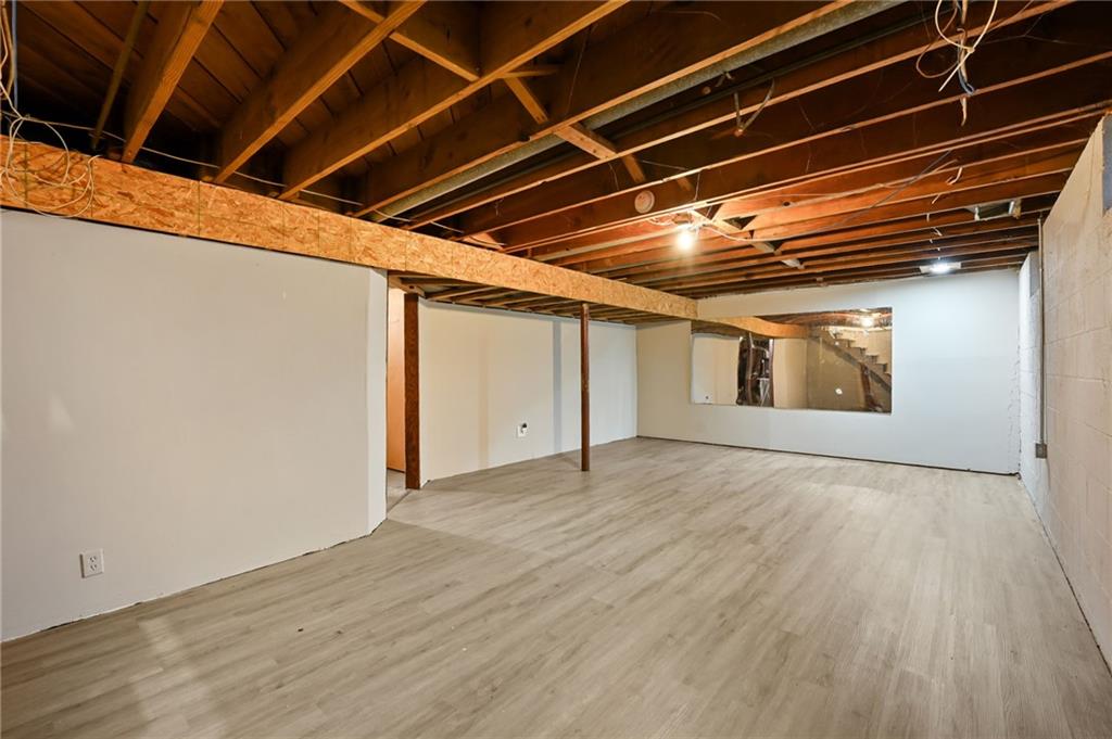 True ranch, with large covered car port. 3 Bdrm., 1 Bath. Partially finished Basement. Fresh Paint Throughout, including ceilings. All rooms have newer flooring. Open floor plan. Vaulted ceilings, and lots of windows for natural light in all the rooms. Basement has large finished area. Separate laundry in basement. Washer and dryer remain with property. Large, fenced backyard. All appliances remain with property.