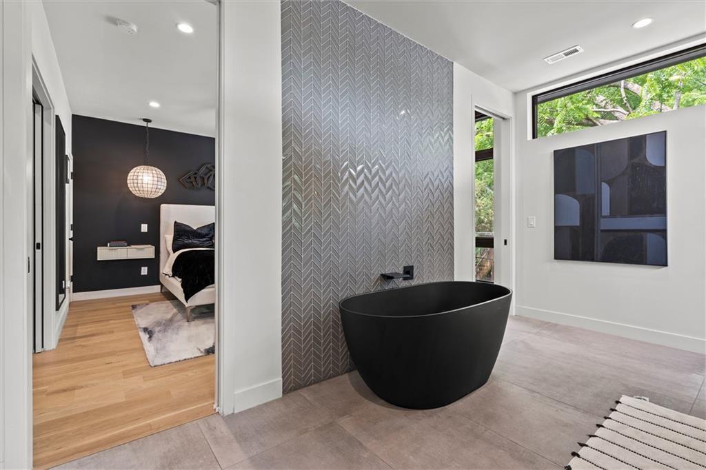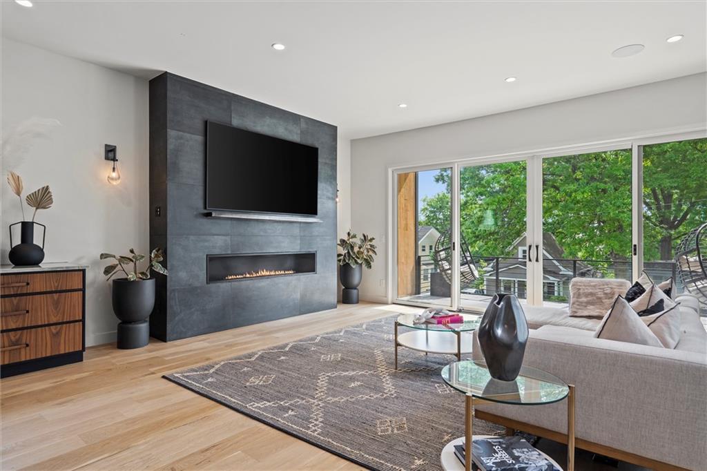 Discover this stunning custom-built home in the heart of Kansas City's sought-after West Plaza neighborhood. With an unbeatable location just minutes from Westport, The Country Club Plaza, and the Nelson Atkins Art Museum, this 2022 Artisan Home is an entertainer's dream. The exterior features gas lanterns, stucco, and a glass garage door with powder coated black metal framing, providing ample off-street parking with a three-car garage. Inside, you'll find 7-inch white oak hardwood floors, custom-fabricated steel railings, and Restoration Hardware light fixtures throughout. The second level includes a kitchen with inset walnut cabinets, hidden appliances, and stunning azul quartz countertops from Italy, leading into the main living area with an 80-inch gas fireplace and floor-to-ceiling charcoal concrete. The dining room features a 24-foot vaulted ceiling and large windows with electric blinds. The home offers multiple outdoor spaces, including concrete patios, a privacy-fenced backyard, and a 200-square-foot rooftop deck with views of the Country Club Plaza. With two primary suites, a potential fifth bedroom, and a top-floor movie theater with a soundproofed entertainment area, this home truly has it all. Freshly painted interior. Sellers are willing to include the home theatre equipment with an acceptable offer. Don't miss your chance to own this masterpiece in West Plaza.