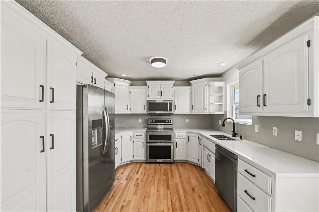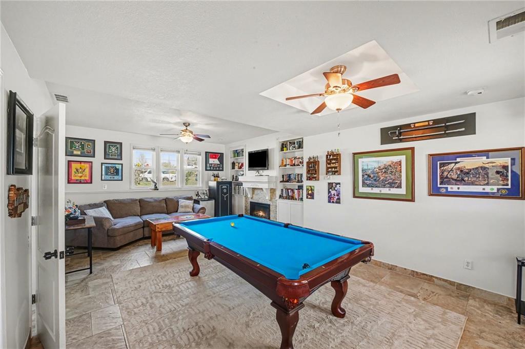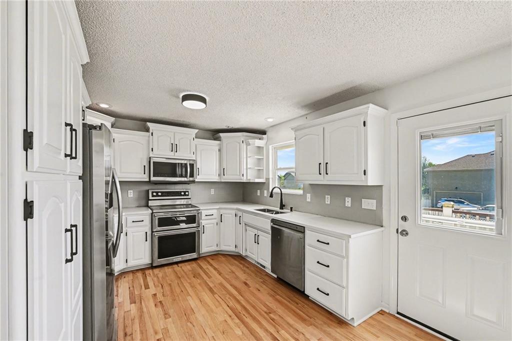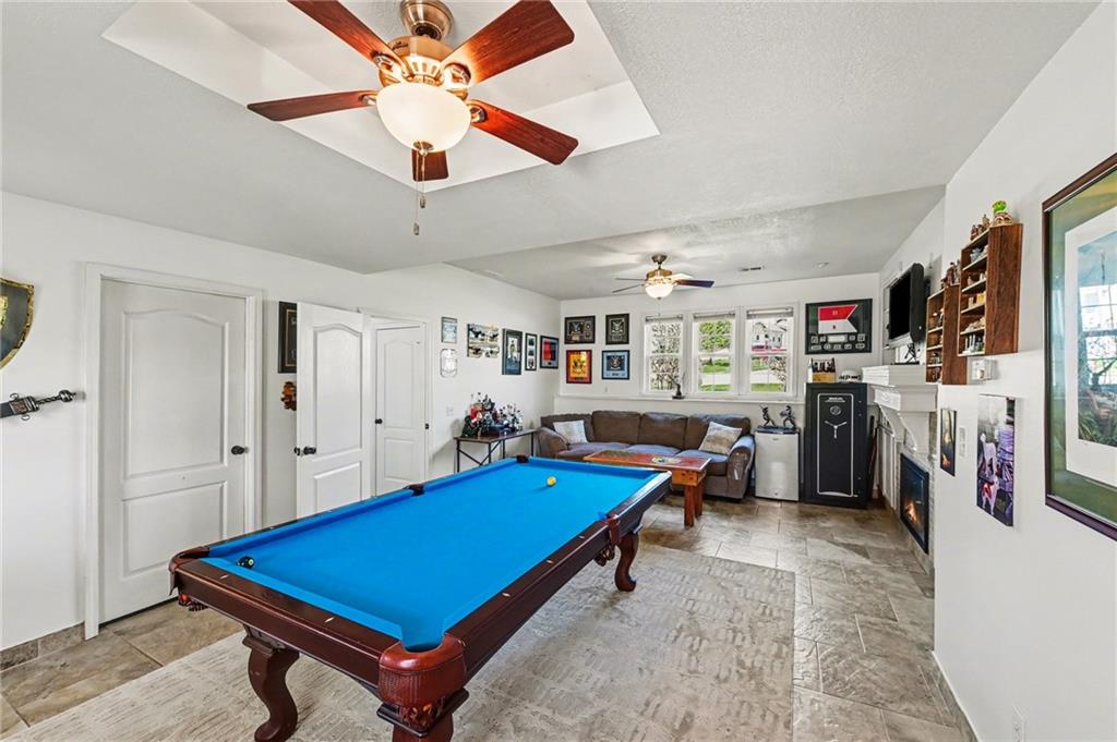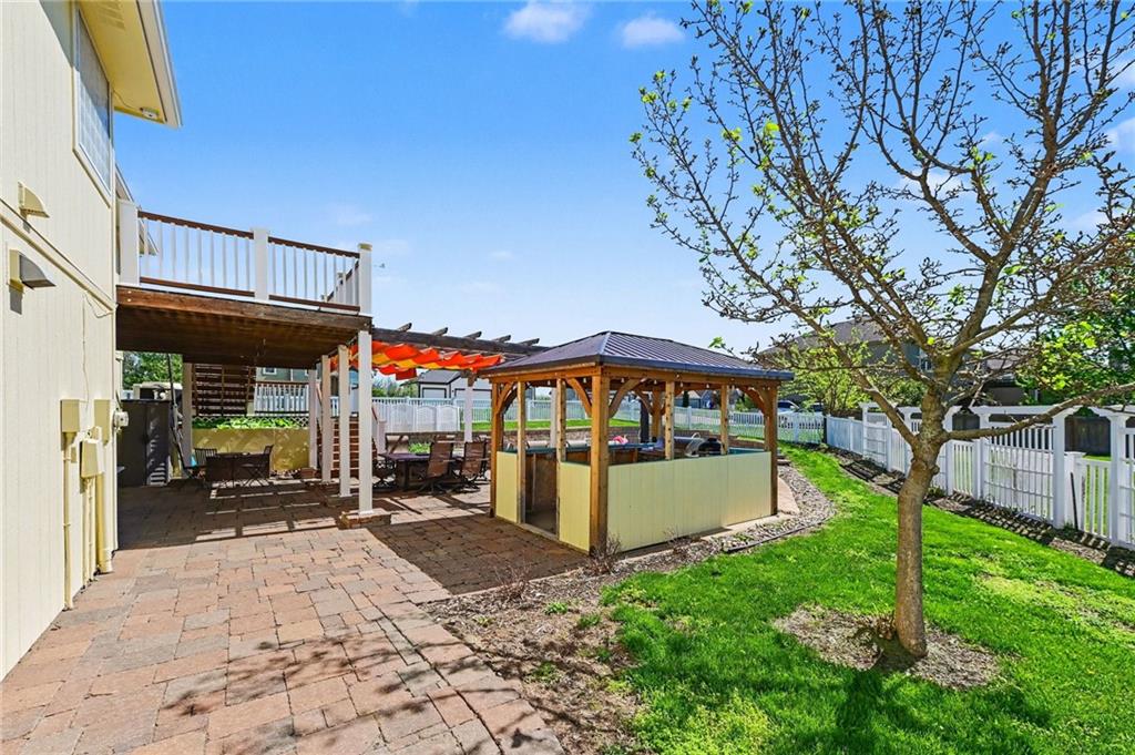 Welcome to your private outdoor entertainment retreat just minutes from Smithville Lake: every day feels like a vacation. Designed for year-round enjoyment, the backyard is the showstopper. Dive into the 30-foot heated saltwater pool, unwind on the spacious paver stone patio, or host unforgettable gatherings at the 14x10 gazebo, fully transformed into a Tiki bar. Relax under the pergola with retractable misting shades beside a fire pit table that comfortably seats six. The fully fenced yard, featuring maintenance-free white vinyl fencing: also includes an outdoor shower for added convenience. Inside, the living room features hardwood floors, a vaulted ceiling, and a cozy fireplace, creating a warm and inviting atmosphere. The kitchen & dining area flow seamlessly to a large deck with stairs leading directly to the pool. The kitchen is equipped with a pantry, refreshed white cabinetry, generous counter space, stainless steel appliances. The primary suite offers a vaulted ceiling, two walk-in closets, and a private ensuite bath complete with double vanities, a whirlpool tub, & a separate shower. Secondary bedrooms each include walk-in closets & ceiling fans. The finished lower level expands your living space with a versatile rec room featuring a second fireplace, built-in bookshelves, a half bath, & walkout access to the backyard. Updates include newer garage doors & openers, a sprinkler system, & refreshed pool landscaping. The HVAC system is just 3 years old, providing added comfort & peace of mind. The 3-car side-entry garage offers ample parking & storage. Enjoy neighborhood amenities including walking trails, a community pool, & a scenic fishing lake. Located near Smithville Lake, with over 175 miles of shoreline, you’ll have access to marinas, campgrounds, picnic shelters, golf courses, & endless outdoor recreation: boating, fishing, sailing, swimming, water skiing, plus hiking, biking, and equestrian trails. This isn’t just a home: it’s a lifestyle.