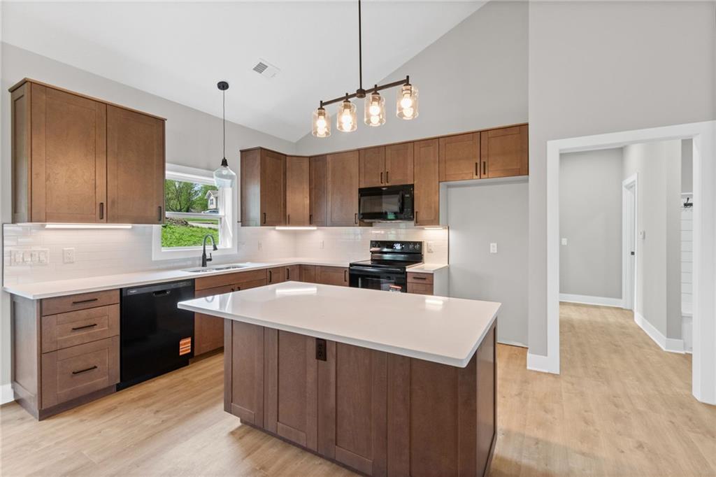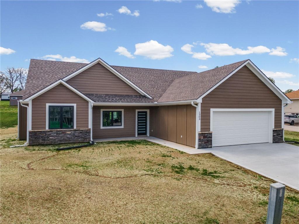 NEW BUILD, Single-level living at its finest. This 3-bed, 2-bathroom home is perfectly situated near the Plattsburg Country Club golf course and surrounded by new homes in a highly desirable area of Plattsburg. This convenient layout has ZERO steps, 36" wide doors, a spacious garage, and a screened-in back patio waiting for its new owners! The thoughtful layout offers an open living space concept with the living room, kitchen, and dining area flowing seamlessly together. On one end, you have 2 bedrooms with a full bathroom between them acting as the main bathroom for your guests and on the other end, you have the primary suite. The spacious primary suite offers a walk-in closet, a spacious on-suite with all of the fixtures that make it feel just right. The oversized windows in the bedrooms are an amazing feature, allowing the perfect amount of natural light into the home. Did I mention NO STEPS? This feature makes the transition from the garage space into the mudroom, straight to the pantry, a breeze! Enjoy the nice, well-graded corner lot, with enough space for your pets to roam yet not too much yard to be a burden on you to maintain. Modern home, modern fixtures, single level living, close to the golf course.