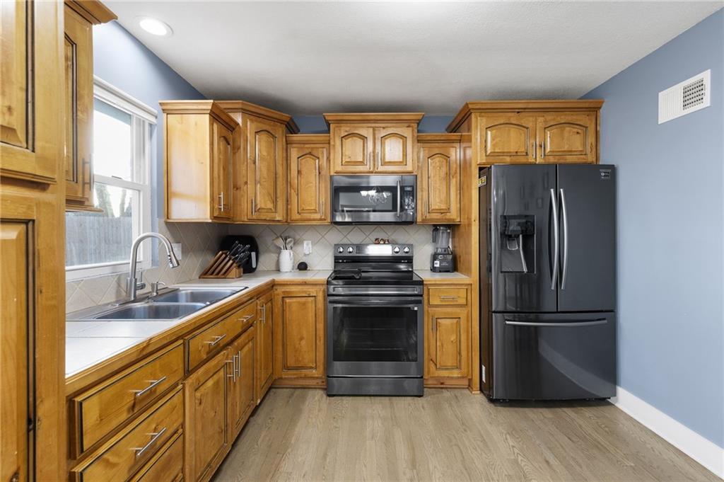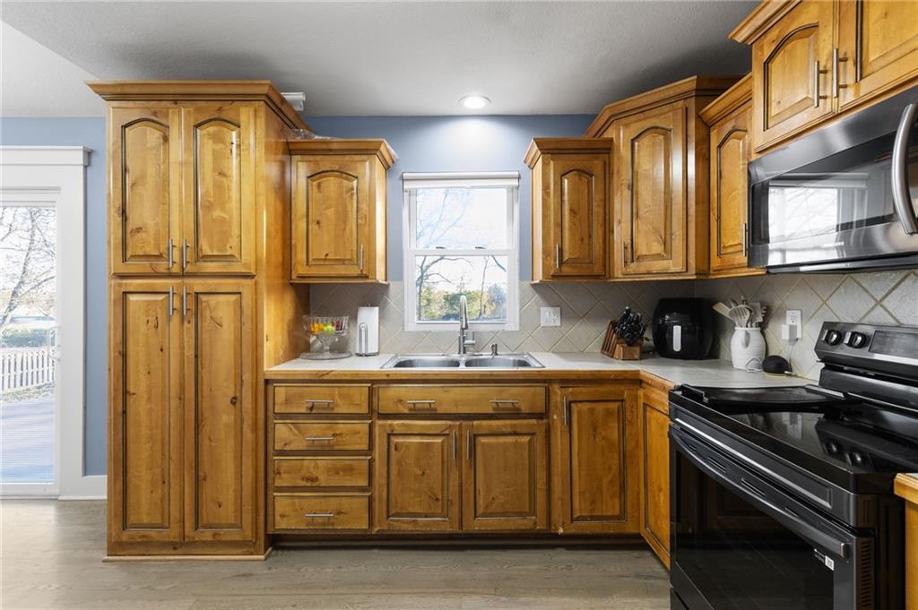 Welcome to this beautifully updated raised ranch! NEW ROOF AND GUTTERS installed 2024. This home offers 3 bedrooms and 1.5 bathrooms, recently renovated throughout. A gorgeous kitchen featuring real wood cabinets. The gleaming stained wood floors add warmth and character, while the finished basement offers a spacious recreation room that could serve as an additional bedroom or home office. The attached garage accommodates two vehicles, and the backyard is perfect for entertaining or relaxing outdoors. Conveniently located near major highways, you’ll have quick access to The Legends and Missouri in just minutes. Schedule your private tour today and discover all this home has to offer!