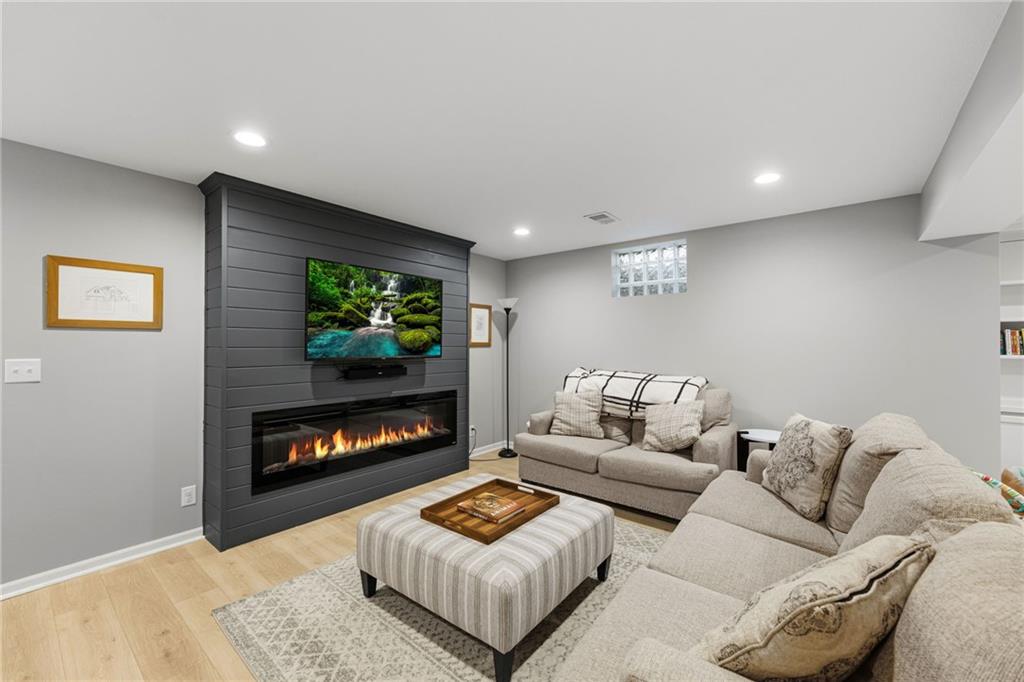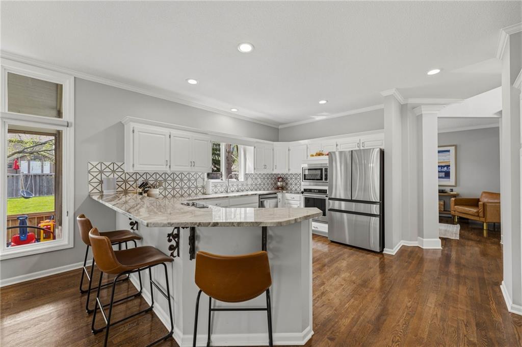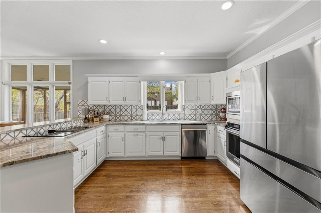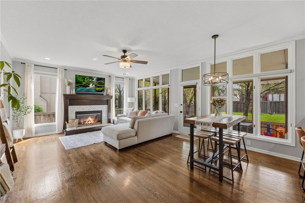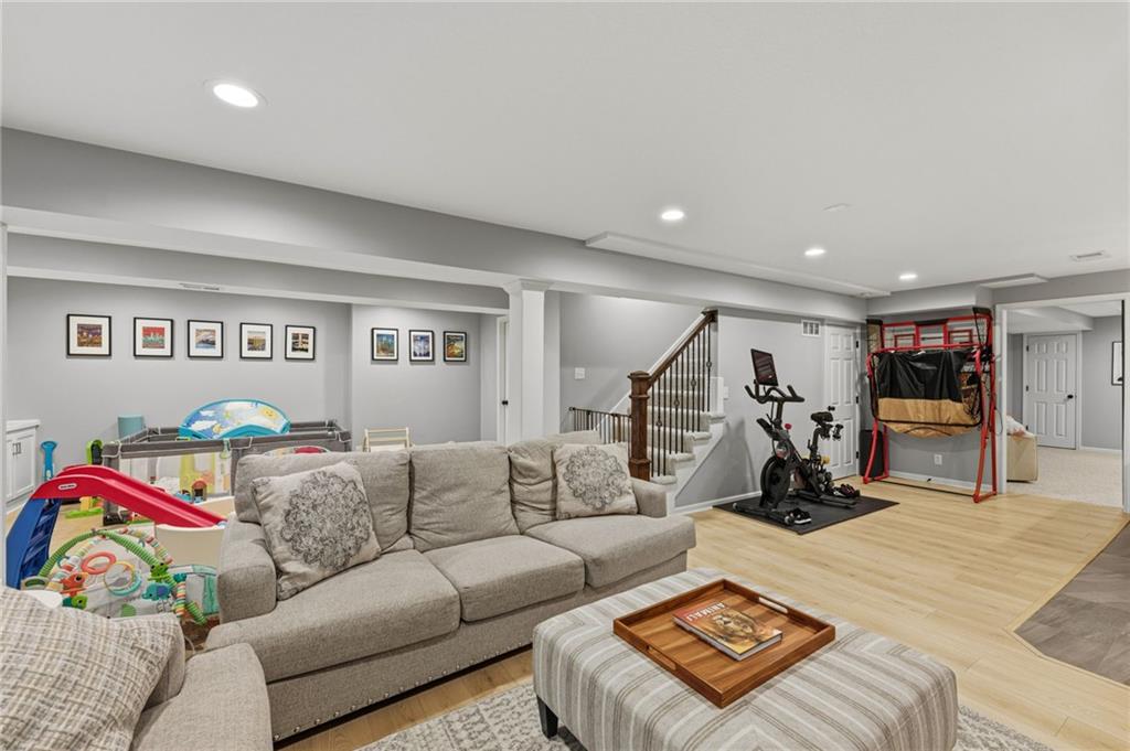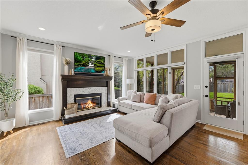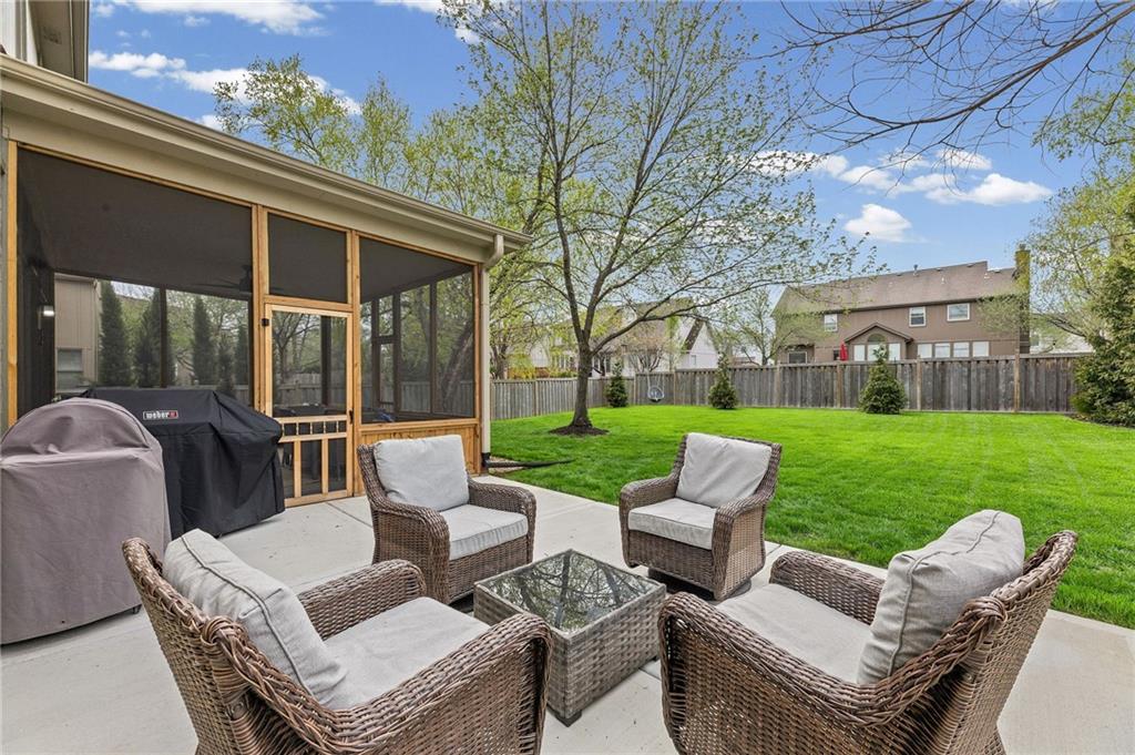 SELLERS HAVE ACCEPTED AN OFFER AND ARE WAITING FOR FINAL SIGNATURES FROM RELO CO. TO CHANGE THE STATUS. This home offers an impressive blend of luxury, functionality, and an unbeatable location. Step inside to a spacious, light-filled interior featuring designer finishes and quality craftsmanship throughout. Hardwood floors anchor the main level, where a thoughtfully designed layout offers multiple living and dining spaces—perfect for both everyday living and effortless entertaining. Enjoy a large, inviting family room ideal for gathering, along with additional living areas that provide flexibility for relaxing, working, or hosting guests. The home also features multiple dining spaces, including a formal dining room for special occasions and more casual areas for everyday meals. Soaring vaulted ceilings and generously sized rooms create a bright, airy atmosphere showcasing the home beautifully. Freshly painted inside and out, the property also boasts numerous upgrades throughout. The stunning gourmet kitchen is a true centerpiece, complete with stainless steel appliances, quartz countertops, and abundant white cabinetry. A well-appointed main-level bedroom provides added flexibility, ideal for guests, multigenerational living, or a private office retreat. Additional highlights include a composite roof replaced less than two years ago, and a lower-level recreation room featuring new LVT flooring, a cozy fireplace and wet bar—ideal for relaxing or hosting guests. A non-conforming sixth bonus room and a convenient half bath complete the lower level. For those who enjoy the outdoors, the newly screened porch offers the perfect retreat. Unwind with a good book while taking in peaceful sunset views over the private fenced backyard. Located in a highly sought-after neighborhood, this home is just minutes from Town Center, offering a variety of dining and shopping options, as well as nearby parks with scenic walking and biking trails.