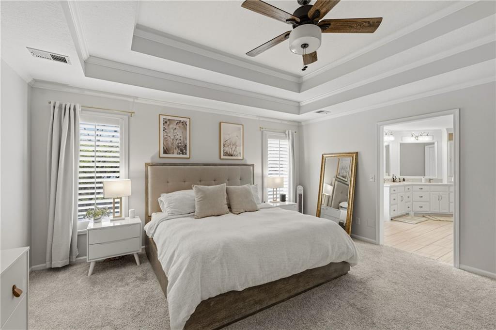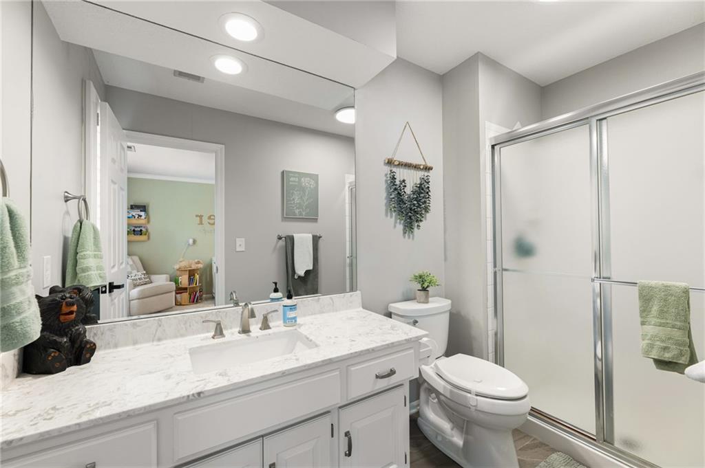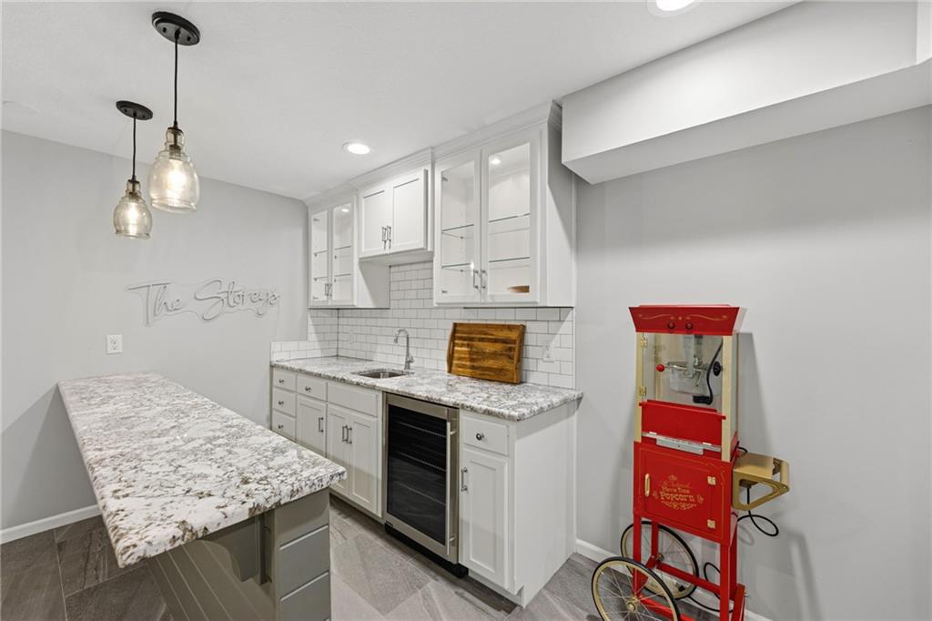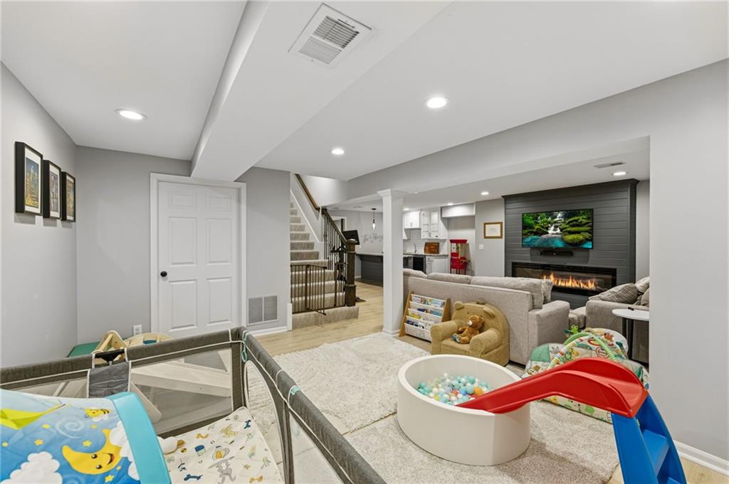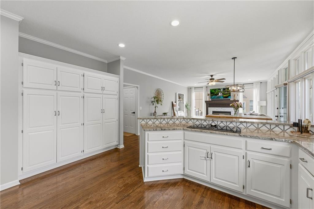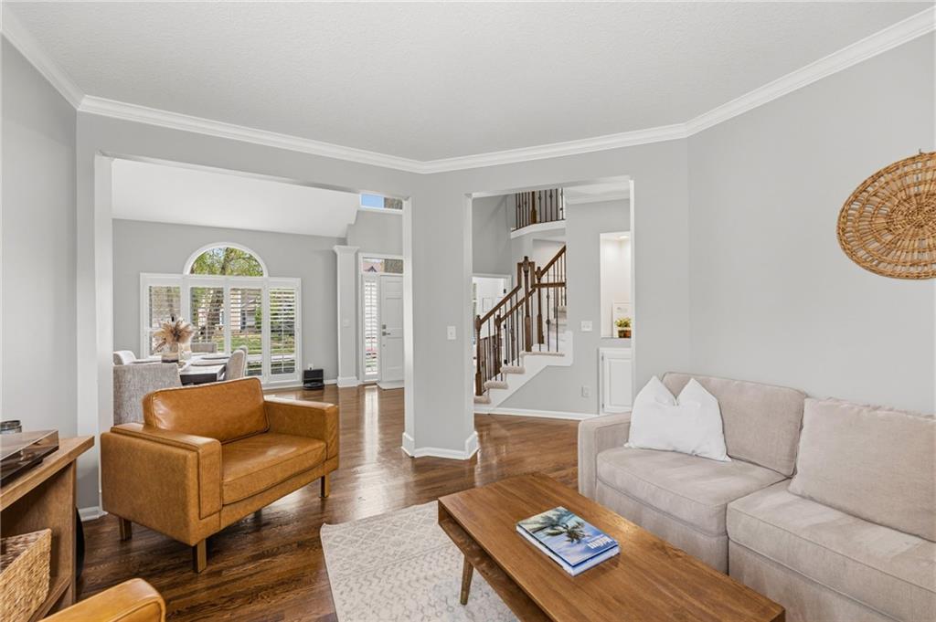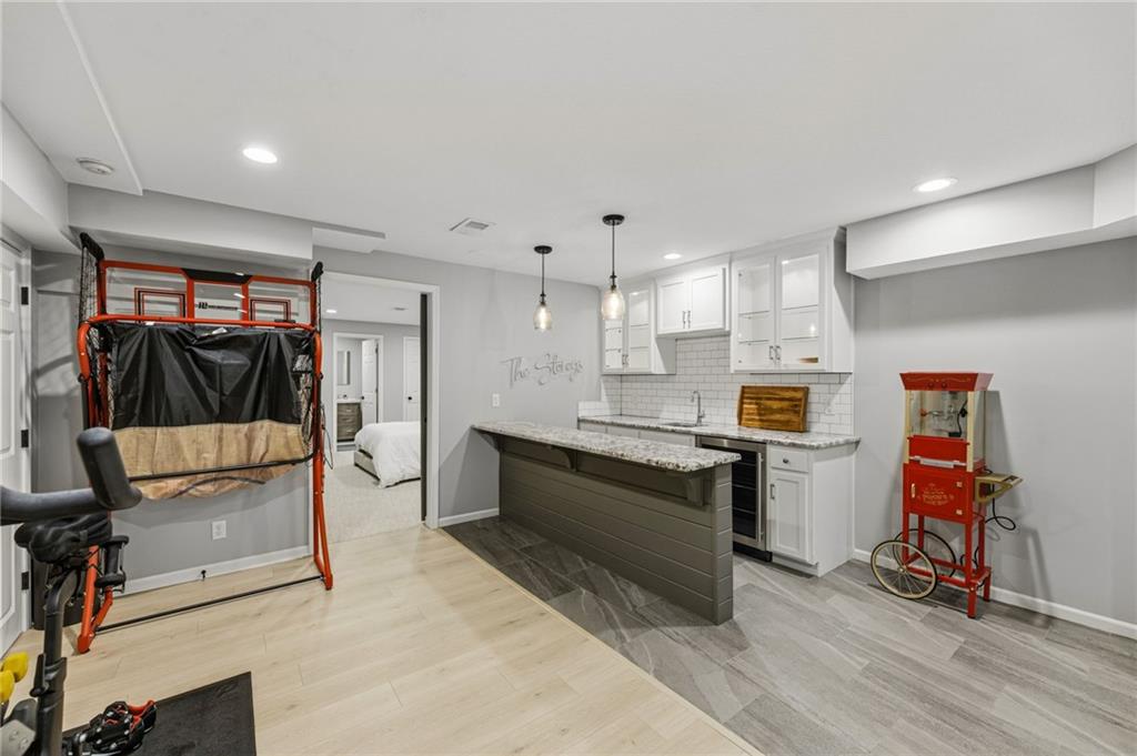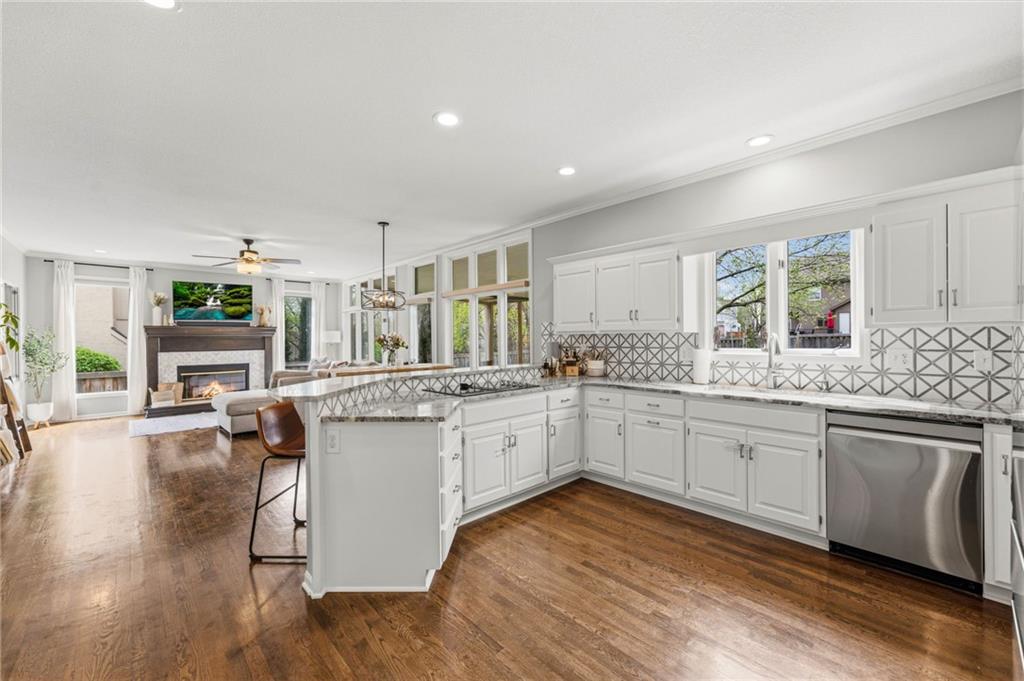 SELLERS HAVE ACCEPTED AN OFFER AND ARE WAITING FOR FINAL SIGNATURES FROM RELO CO. TO CHANGE THE STATUS. This home offers an impressive blend of luxury, functionality, and an unbeatable location. Step inside to a spacious, light-filled interior featuring designer finishes and quality craftsmanship throughout. Hardwood floors anchor the main level, where a thoughtfully designed layout offers multiple living and dining spaces—perfect for both everyday living and effortless entertaining. Enjoy a large, inviting family room ideal for gathering, along with additional living areas that provide flexibility for relaxing, working, or hosting guests. The home also features multiple dining spaces, including a formal dining room for special occasions and more casual areas for everyday meals. Soaring vaulted ceilings and generously sized rooms create a bright, airy atmosphere showcasing the home beautifully. Freshly painted inside and out, the property also boasts numerous upgrades throughout. The stunning gourmet kitchen is a true centerpiece, complete with stainless steel appliances, quartz countertops, and abundant white cabinetry. A well-appointed main-level bedroom provides added flexibility, ideal for guests, multigenerational living, or a private office retreat. Additional highlights include a composite roof replaced less than two years ago, and a lower-level recreation room featuring new LVT flooring, a cozy fireplace and wet bar—ideal for relaxing or hosting guests. A non-conforming sixth bonus room and a convenient half bath complete the lower level. For those who enjoy the outdoors, the newly screened porch offers the perfect retreat. Unwind with a good book while taking in peaceful sunset views over the private fenced backyard. Located in a highly sought-after neighborhood, this home is just minutes from Town Center, offering a variety of dining and shopping options, as well as nearby parks with scenic walking and biking trails.