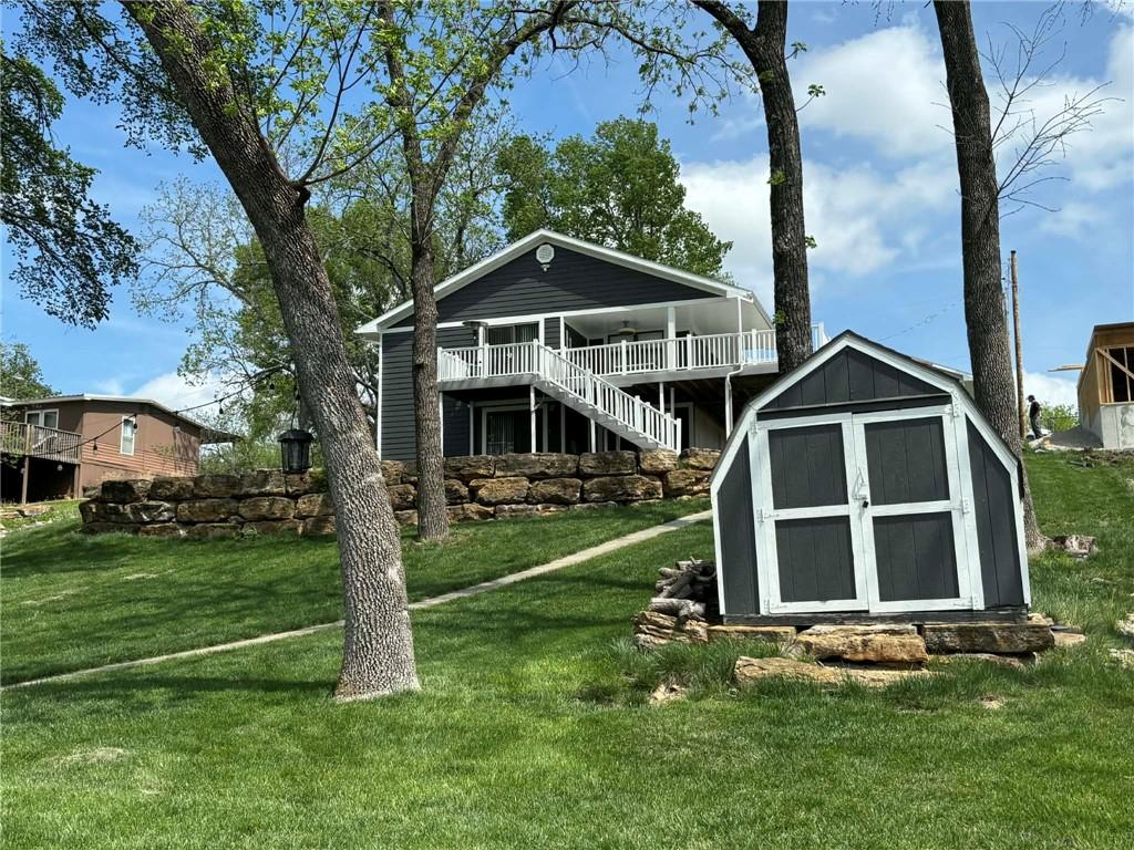 Well-maintained 3 BR, 3 bath home with gentle sloping lot at desirable Lake Fort Scott. Boat dock with lift, mature trees, fire-pit area, covered composite deck and covered patio for your outdoor enjoyment. Spacious open basement area has ample space to finish 1 or 2 additional bedrooms if you want to host large "sleep overs". Newer HVAC, 2 car detached garage, plus 1 car detached garage. Year-round enjoyment, relaxation and leisure found here! If you are looking for a retreat or full-time lake residence, don't miss this one. Located only 1 hr. 15 minutes south of metro KC area. There is a $150. annual lake frontage fee to City of Ft. Scott and monthly sewage bill paid to City of Ft. Scott.