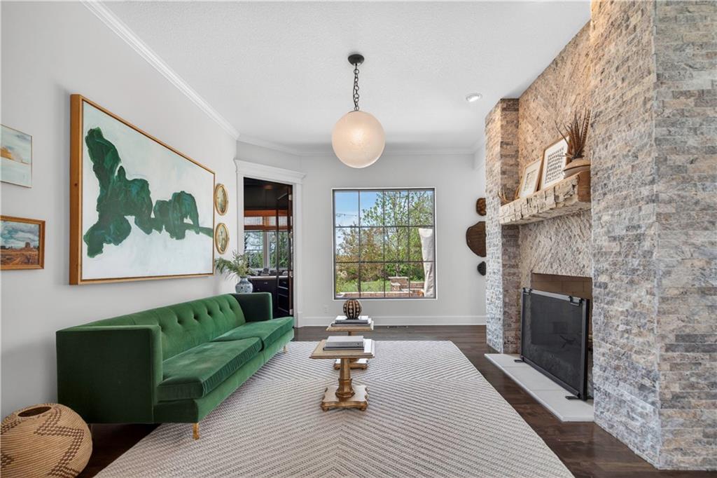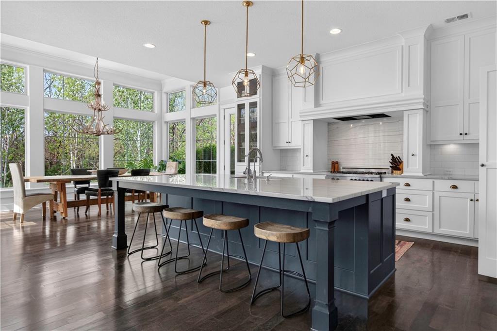 STUNNING POLO FIELDS 2-STORY—A TRUE ENTERTAINER’S DREAM IN BLUE VALLEY! Perfectly positioned in one of the area’s most sought-after communities, this exceptional residence blends refined finishes with a thoughtfully designed layout tailored for both everyday living and upscale entertaining. A striking see-thru fireplace anchors the formal living room and dramatic Great Room, where soaring ceilings and walls of windows flood the space with natural light. The chef’s kitchen is a showpiece—featuring a large center island, quartzite countertops, walk-in pantry and premium stainless steel appliances—all remaining. The adjoining breakfast area and private main floor office both open directly to the patio, creating seamless indoor-outdoor flow ideal for al fresco dining and gatherings. Retreat to the luxurious primary suite offering a spa-inspired bath with dual vanities, whirlpool tub, separate shower and an expansive walk-in closet with convenient access to the bedroom-level laundry. Three spacious secondary bedrooms each feature private en-suites and walk-in closets, delivering comfort and privacy for all. Finished lower level is designed to impress—complete with a media-ready family room with projection screen, an entertainer’s wet bar with oversized quartz topped island (hidden handles for tons of storage) and set up for ice machine and under counter mini-fridge, wine cellar (with cut-out ready for your chiller), fitness area, fifth bedroom and fifth full bath with walk-in shower and dry sauna. Step outside to your own private escape—featuring a stunning stone patio and firepit designed for evenings under the stars. Refined. Elevated. Unforgettable. This is luxury living—just minutes from everything--parks, premier shopping, dining and quick highway access. WELCOME TO YOUR DREAM HOME!