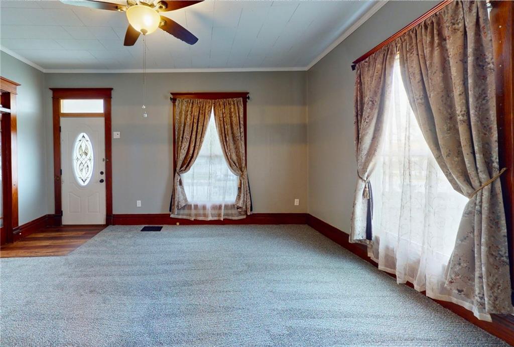 Discover this beautifully updated residence where classic charm meets modern convenience. This three-bedroom, one-bathroom home features a freshly painted interior, providing a bright and clean atmosphere throughout every room. The functional floor plan boasts a large formal dining room and a dedicated laundry room, offering the space and utility desired in a modern layout. Exterior highlights include an inviting front porch, a generous back deck for outdoor relaxation, and a yard fully enclosed by a privacy fence. Additionally, the property includes a detached one-car garage, providing secure parking or extra storage. This move-in-ready home is prepared for its next chapter.