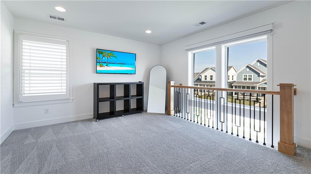 Step into this stunning, modern-chic residence offering 3 bedrooms, 2 full baths, and 1 half bath, thoughtfully designed with high-end upgrades throughout. At just five years young, this home truly stands out. From the moment you enter, you’re welcomed by an abundance of natural light streaming through dramatic two-story windows with motorized blinds. Wide-plank wood flooring flows seamlessly from the living room into the kitchen, creating a warm and inviting atmosphere. The living area features a striking fireplace flanked by custom built-in cabinetry, serving as a beautiful focal point. The kitchen is a chef’s dream, equipped with premium Café appliances, including a six-burner gas range, dishwasher, and a high-end refrigerator (originally valued at over $3,000), all included. Additional highlights include a gooseneck faucet, under-cabinet microwave, and upgraded soft-close cabinetry. You'll also find upgraded plantation blinds. Convenience meets functionality with a main-floor laundry room that also features a built-in desk. The main-level primary suite offers a true retreat, complete with a spa-inspired bathroom showcasing a spacious tiled shower with dual showerheads and double vanities. Upstairs, you’ll find a versatile second living area along with two generously sized bedrooms, each with ample closet space. The full, daylight unfinished basement provides endless possibilities and is already stubbed for a future full bathroom and also boasts a water softener. Completing the home is an attached two-car garage and a fenced side yard, adding both practicality and charm. This exceptional property combines modern style, comfort, and thoughtful upgrades. This neighborhood is home to a lake, swimming pool, playground and walking trails.