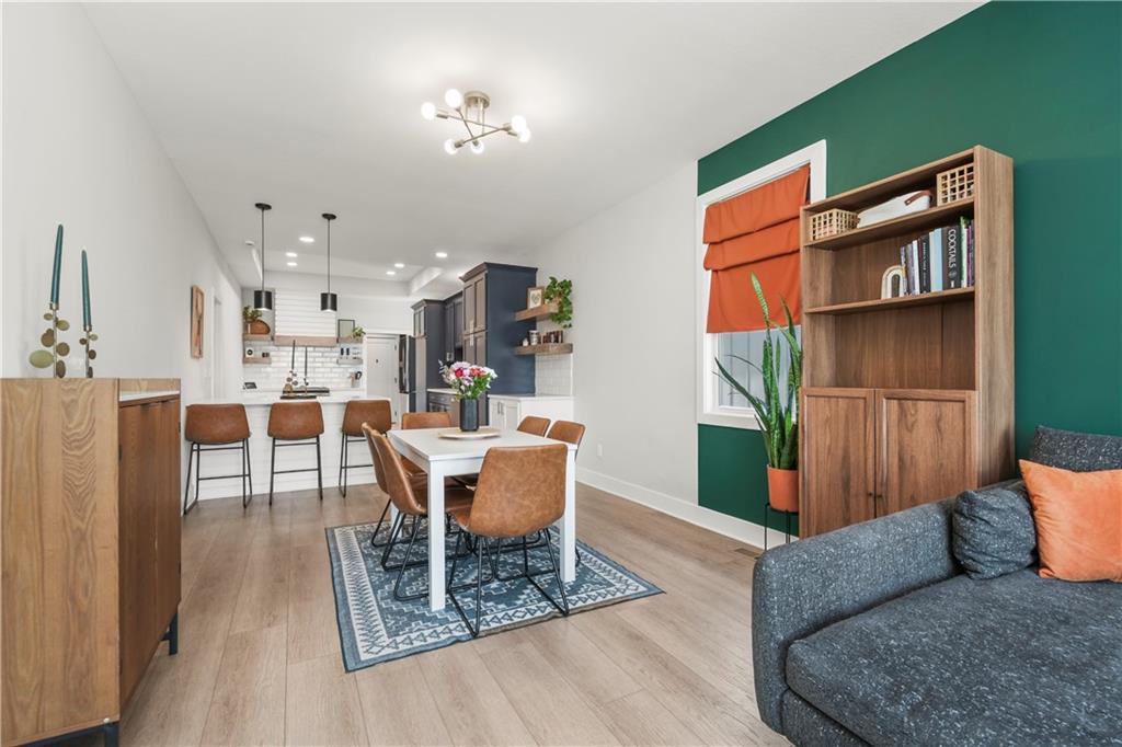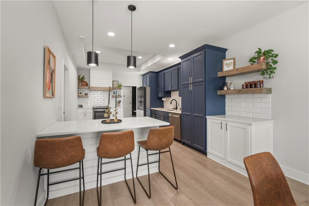 You're going to love living here! This custom-built home is in the heart of the new urbanism community, New Town at Harmony. The community has an amphitheater for live events, sand volleyball, a community park, water canal features, and a weekend coffee shop. More amenities to come, like community pools and an event space/wedding venue. Walk right out the full sliding front doors to a spacious deck. Great for entertaining or just relaxing on your own. The kitchen has custom cabinets, stainless steel appliances, and useful features like a mixer stand shelf that folds up easily and then tucks away when you're done. The primary bedroom suite pampers you with upgrades like a walk-in closet, full-body jets in the shower, a soaker tub, and a hot drawer in the vanity. Step upstairs to a thoughtfully designed office, gaming space, or non-conforming 4th bedroom. Walk down to the finished basement with 2 bedrooms, a full bathroom, and a family/rec room. There is even a 3rd spot in the oversized 2-car garage to accommodate a golf cart, motorcycles, or extra storage. Award-Winning Blue Springs School District! So much to love about this move-in-ready charmer. Book your showing today!