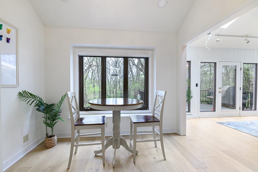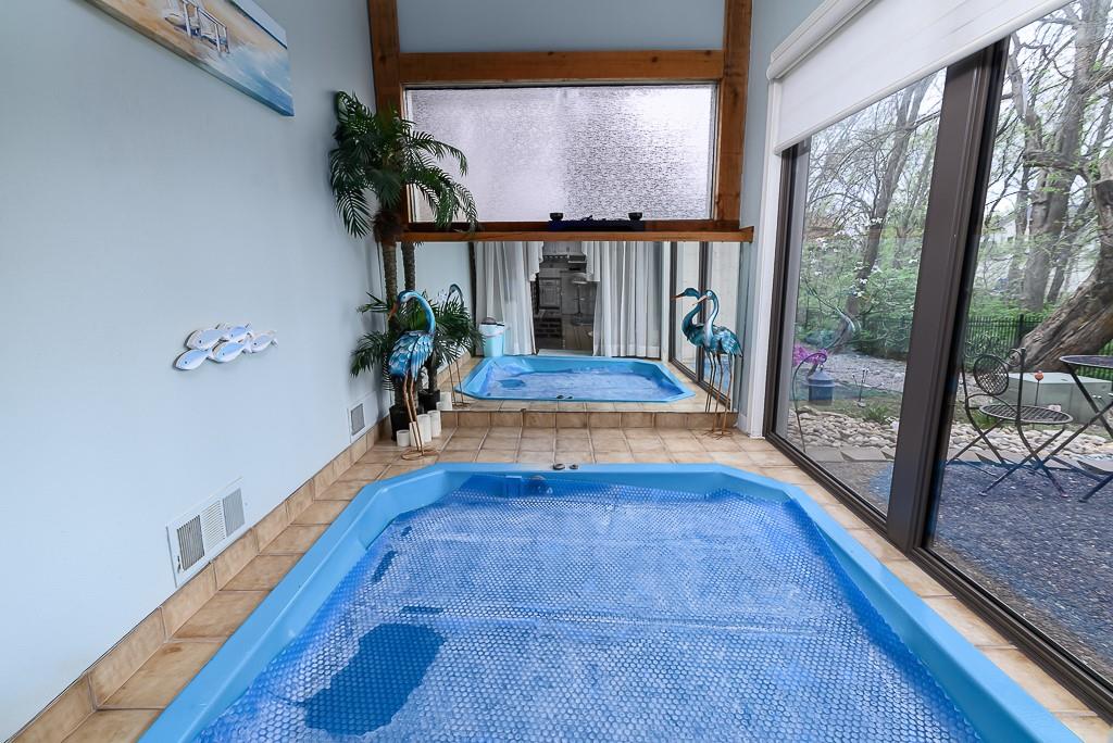 GORGEOUS VILLA OVERLOOKING A WOODED PARK AREA WITH SPACE, STYLE, AND ROOM TO ENTERTAIN! This home offers two separate living quarters with 2 kitchens and 2 laundry rooms, adding flexibility and convenience. 4 Bedroom, 3 full bath 1.5 story home features a spacious kitchen with island and plenty of cabinets, a formal dining room with vaulted ceilings, breakfast area, and a great room with soaring ceilings and a see-through brick fireplace into the sun room with vaulted ceilings and skylights. The main-level master suite offers his and her walk-in closets and a private bath with double vanities, separate shower, and tub. Upstairs, you’ll find 2 bedrooms, a full bath, and a loft area that overlooks the main living spaces. The walkout basement is a true highlight with a large family room, tall ceilings, a see-through fireplace into the rec room, full kitchen, sunken hot tub room, full bath with steam shower, and the 4th bedroom. Enjoy the ease of a maintenance-free HOA community that maintains the yard and handles snow removal. Outside, relax on the wonderful patio, Trex deck, with thermal Rolox windows and atrium doors.
