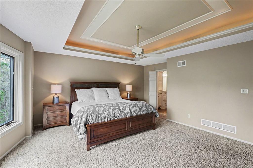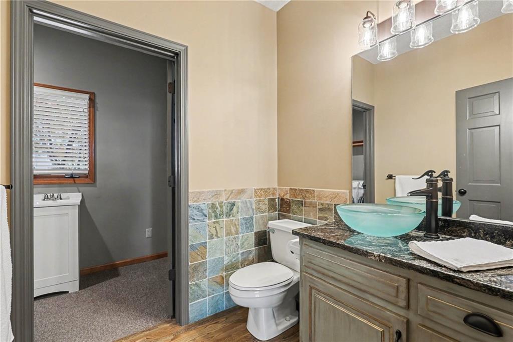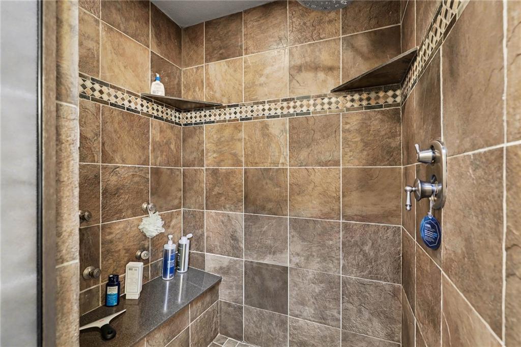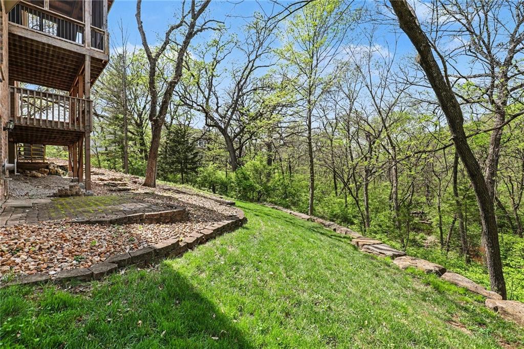 Stunning custom-built home where thoughtful design meets breathtaking views—come for the house, stay for the scenery. The chef’s kitchen is a showstopper with hardwood floors, custom cabinetry, granite tile countertops, a breakfast bar with seating, and stylish pendant lighting. The breakfast area features soaring ceilings, walls of windows, and access to the covered, screened-in porch—perfect for relaxing mornings or evenings. The inviting Great Room offers beautiful views of the treed backyard, upgraded trim, and a striking stone fireplace. The grand entry welcomes you with a vaulted ceiling, updated lighting, and tiled flooring. The primary suite is a retreat with bayed windows, a tray ceiling, and ceiling fan. The spa-like bath includes a double vanity with custom cabinetry, tiled floors, and a walk-in tiled shower. A secondary bedroom on the main level offers flexibility as a guest room or office. The large laundry room adds convenience with cabinetry and a sink. The lower level features a spacious living area with a corner fireplace and access to another covered deck, along with two generously sized bedrooms, a full bath, and a non-conforming bonus room. The next level is perfect for entertaining with a massive rec room, wet bar, and additional full bath. Walk out to the private, landscaped backyard and enjoy the serene, wooded setting year-round. Additional highlights include storage space under the two-car garage and a dedicated workshop area. This home truly has it all—space, function, and incredible views.