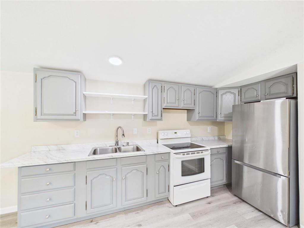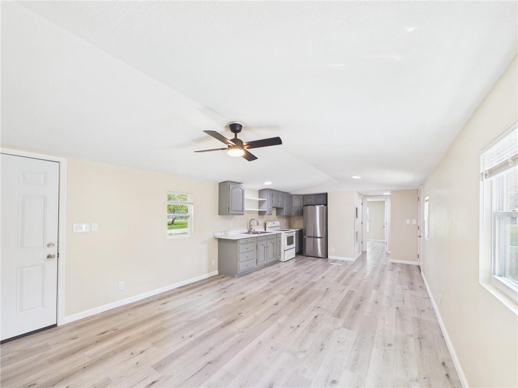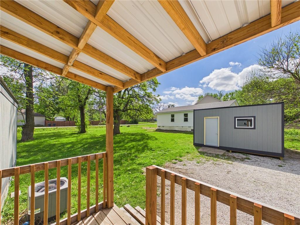 This tastefully updated 3-bedroom, 2-bath ranch-style home offers 924 square feet of cozy living. Remodeled less than three years ago, this home features a host of upgrades including a new metal roof, new windows, new fixtures, and stylishly painted kitchen cabinets that bring a fresh, contemporary feel to the space. Step inside to an open living room/kitchen layout. Two bedrooms are located at one end of the home, while a third is located at the opposite end creating privacy. Having two full bathrooms adds convenience and functionality. Outside, you’ll find a spacious 15x16 shed—ideal for hobbies, storage, or a small workspace. The covered porch provides a great spot to relax and enjoy the outdoors, while the corner lot offers additional yard space & privacy. The title has been eliminated with the county and is permanently affixed to the land making it real estate. Whether you’re a first-time buyer, downsizing, or looking for a move-in-ready investment, this home checks all the boxes.