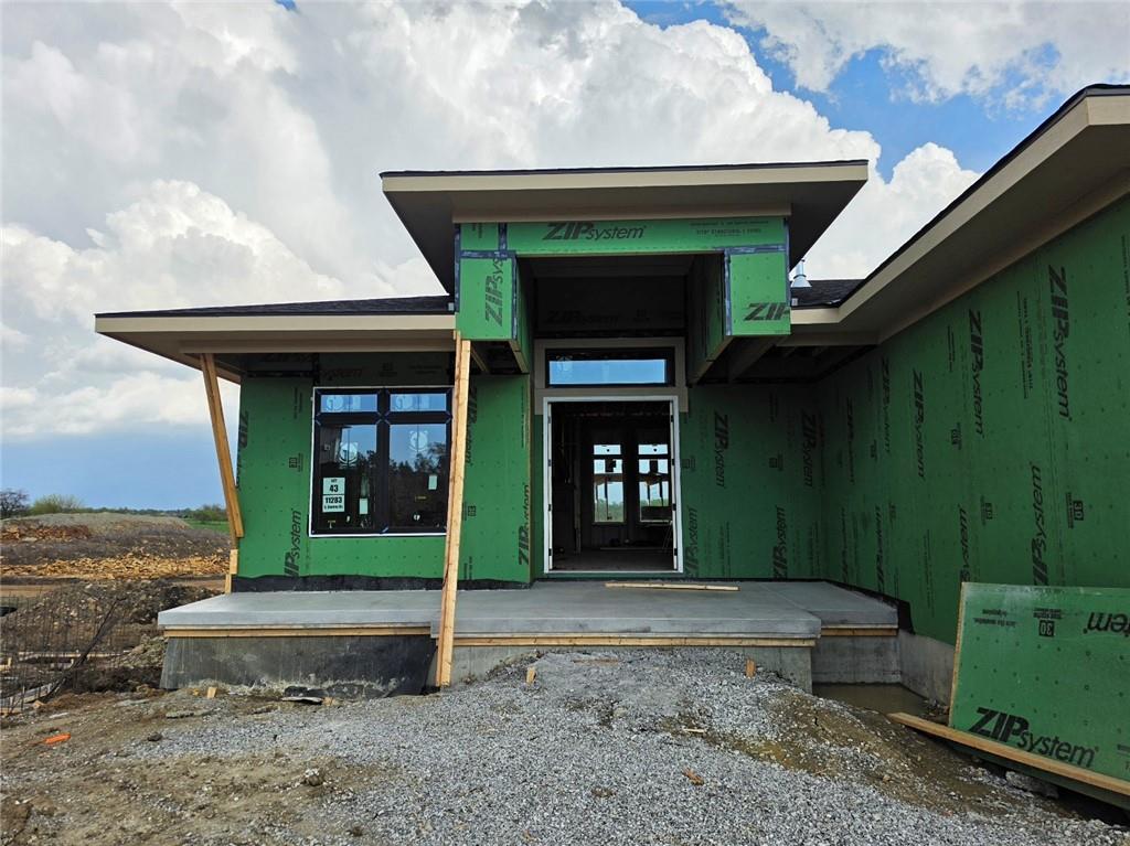 The Chesapeake Ranch II, presented by Hilmann Home Building, is a refreshing take on the maintenance-provided lifestyle. While still a reverse one and a half, this floorplan features 3 bedrooms on the main level. As soon as you see this home, you will love the darling porch on the front of the home. Enter through gorgeous 8' French doors with glass and make your way into the heart of the home and find a huge family room with built in cabinets, floating shelves, and a gas fireplace. Next you will find the kitchen of your dreams - custom cabinets, large kitchen island, gas cooktop, quartz counters, enormous walk-in, pantry with coffee bar and frosted glass door, gooseneck faucet, slow close drawers/doors...all the bells and whistles you have been looking for! You'll find hardwoods throughout the living room, dining room, kitchen and pantry, and 8 foot doors. Custom trim detail and design making this home feel perfectly elevated. Escape to the primary suite and find a spacious bedroom with luxurious, spa-like ensuite, attached to a huge walk-in closet with pull downs for off-season storage. You'll love the functionality of this layout as the laundry room (built-ins/tile floors) is attached to the primary closet. Another 2 bedrooms (and/or offices) with full bath round out the main floor of this home. Head down to the lower level on the u-shaped staircase with designer stair carpet. Downstairs you will find a sizeable rec room with fantastic wet bar, linear electric fireplace with stone, and 1 more bedroom with full bath. Prairie Canyon is maintenance provided and allows fences! Now your time is your own! Come out and take a look at this home on this beautiful property!
