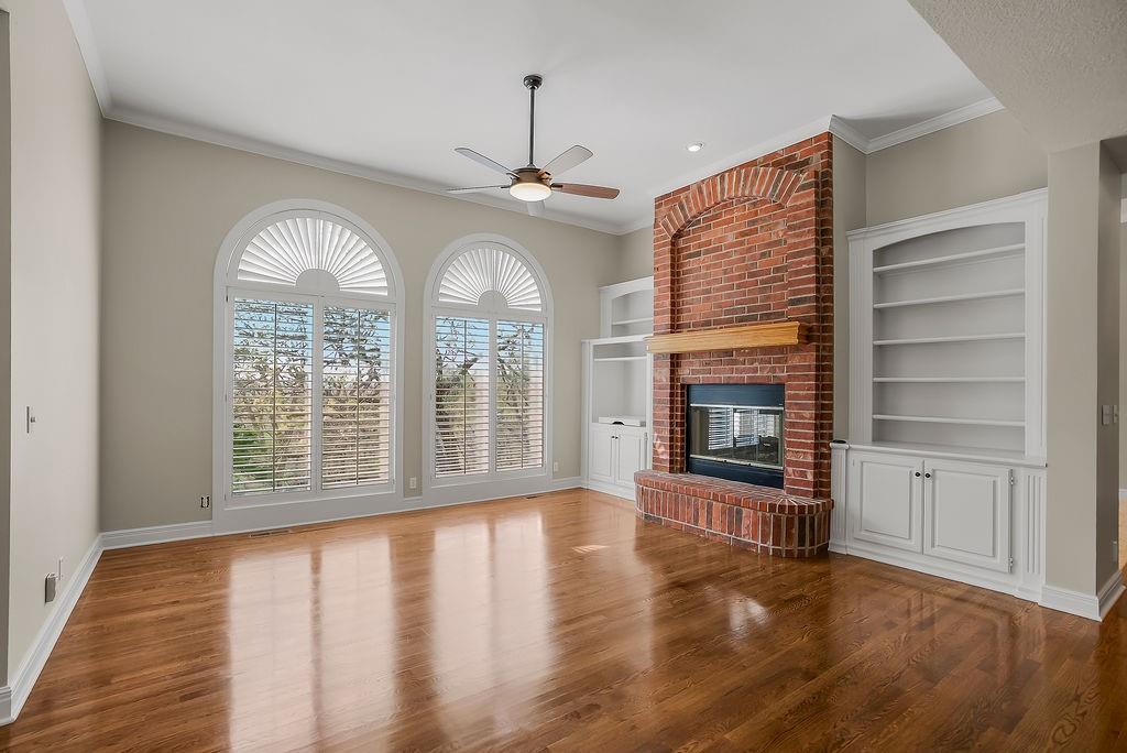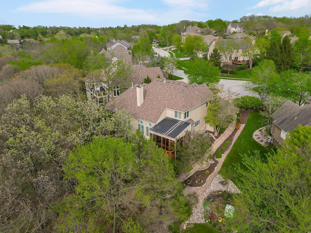 This meticulously maintained 1.5-story home with a finished walk-out basement is perfectly situated at the end of a quiet cul-de-sac. Set on a spectacular wooded lot backing to a scenic valley and greenbelt, the property offers exceptional privacy and serene views, with frequent visits from local wildlife. Main level features an open formal dining room perfect for entertaining large groups, a living room with a wall of windows, hearth room with built-ins and a see-through brick fireplace to the living room, and an updated kitchen (2024) with white quartz and three pantries (one walk-in). The main-floor primary suite offers a bay window, boxed vaulted ceiling with interior lighting, a spa-like bath with separate tub and shower, see-through fireplace to the bedroom, and a huge walk-in closet. Laundry with desk/folding counter off the 3-car garage. Screened deck overlooks private, tree-filled backyard. Upstairs: three bedrooms — two share a Jack-and-Jill bath, one with a private ensuite — plus built-in bookcases in the hall and guest bedroom and easy attic access that could be finished as a loft. Finished walk-out basement includes large game area with wet bar, 5th bedroom, 4th full bath, separate TV room, and patio. Additional highlights: immaculate condition, hardwoods on main level, plantation shutters, central vac, sprinkler system, wired for surround sound on main floor, natural stone landscaping and retaining walls, stamped concrete walkways, exterior paint 2022, dual HVAC units. Enjoy resort-style living in Cedar Creek — one of Kansas City’s finest neighborhoods with access to a 65-acre fishing lake, 3 community pools, lighted tennis & pickleball courts, clubhouse, indoor gym, and miles of walking trails.