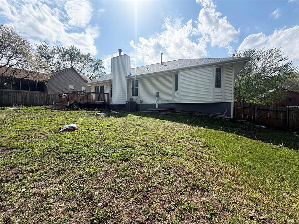 Going Going GONE!!!! Great location close to Lake Tapawingo and I-70. Open Floor plan with soaring vault in living room with ceiling fan, fireplace and 2 big windows letting in a lot of light. Open Kitchen & dining/breakfast room with slider out to deck and fenced yard. Huge 15x14 primary suite bedroom and private bath with shower. Finished lower level has another possible bedroom/den/office and family room with huge bath and jacuzzi tub.. not your normal tub, wait till you see the jets and ozone add on plus added hot water heater to accommodate. Storm shelter and enough firewood to last you several winters! Oversized 2 car garage and maintenance Free exterior. Just minutes from Hidden Valley Sports Complex with lots of soft ball, soccer and football plus open fields. NEWLY RENOVATED neighborhood city park across the street. Close to Burrus Old Mill Park. Quick access to Valley View and Blue Parkway as well as 40 Hwy