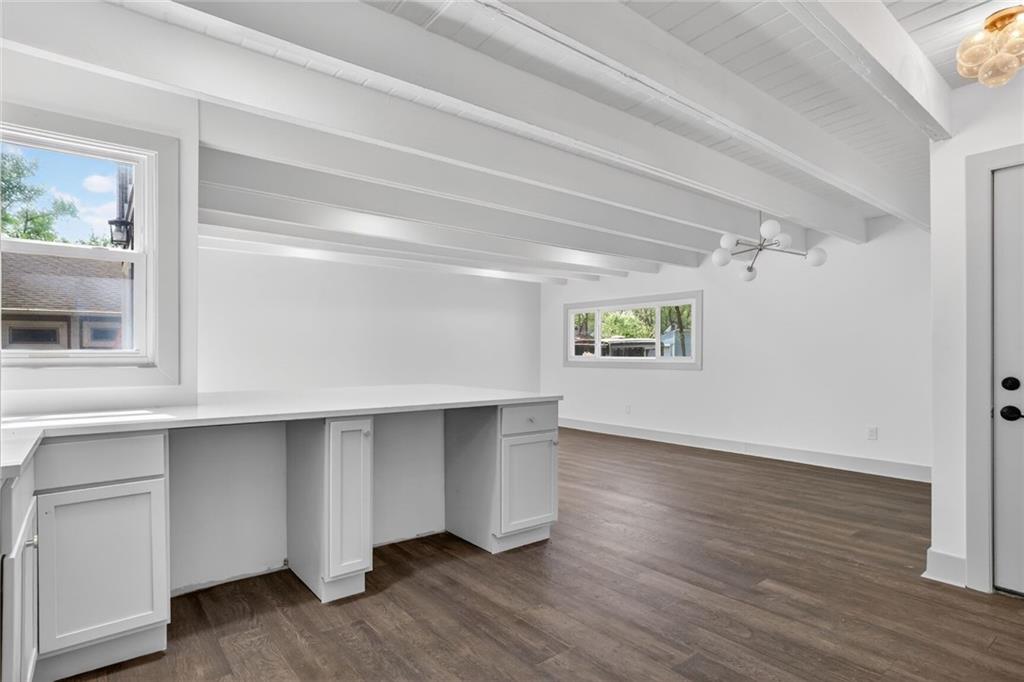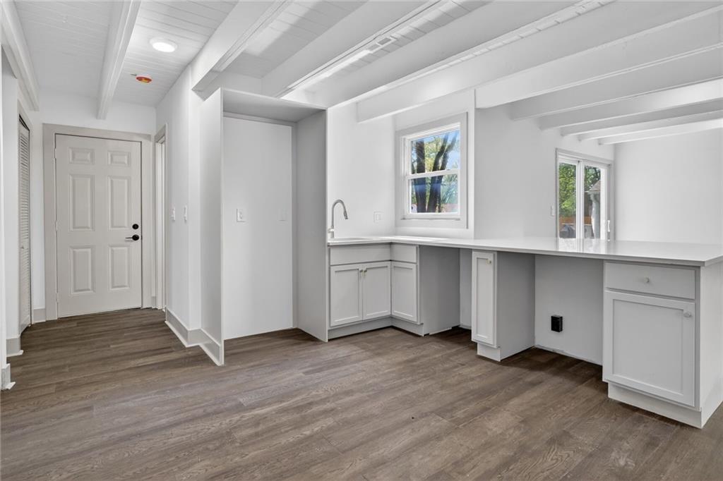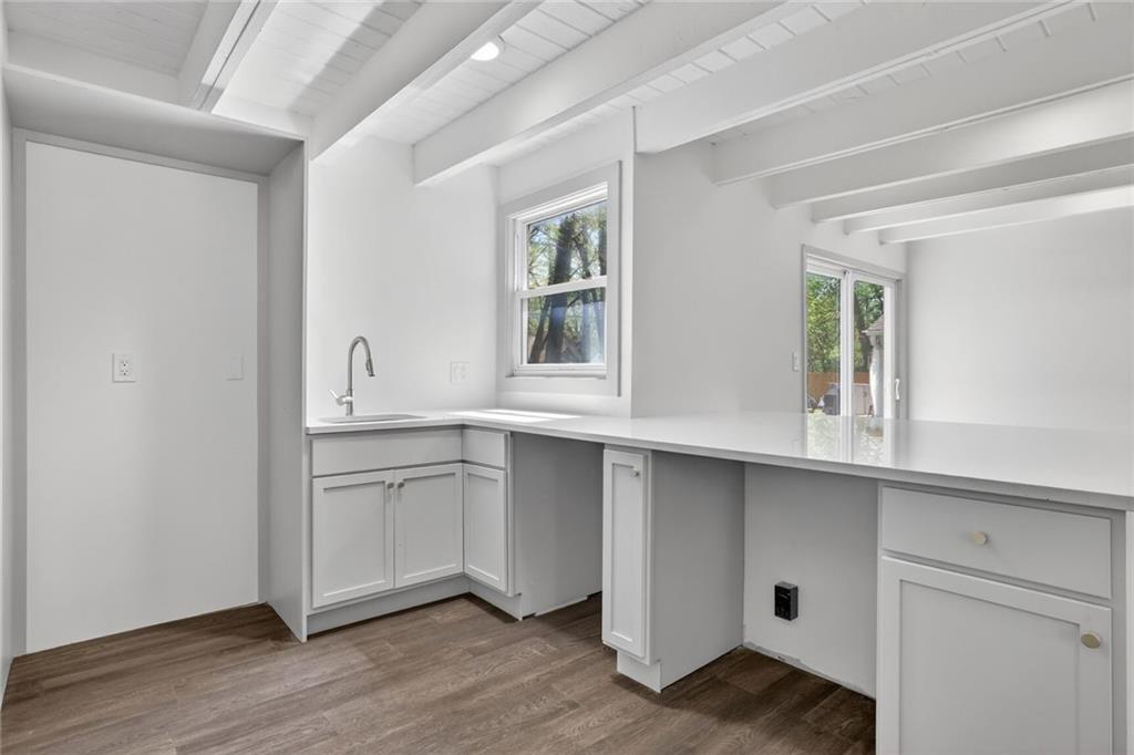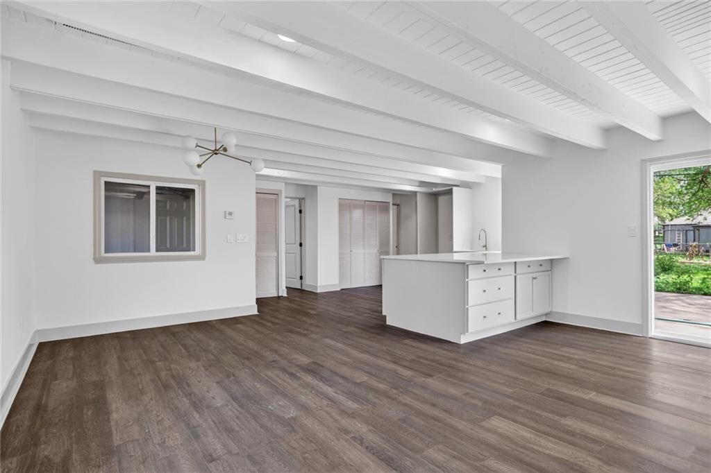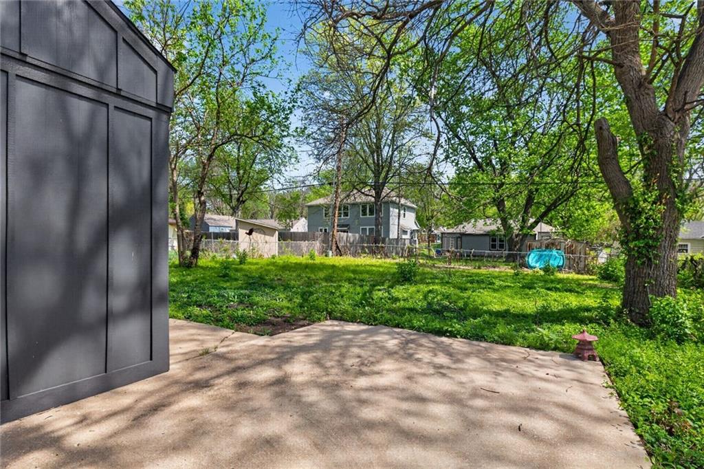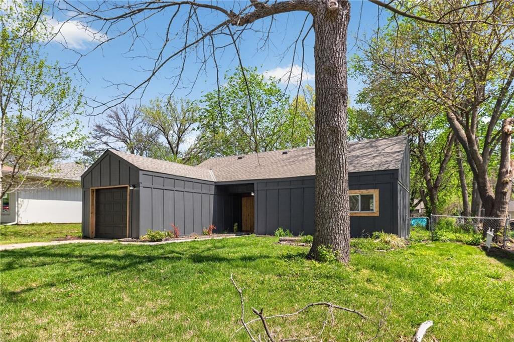 Welcome home to this beautifully completely remodeled 2-bedroom, 1-bath ranch offering convenient one-level living. This home has been taken down to the studs and rebuilt from the ground up — every single thing is brand new: new roof, new electrical, new plumbing, new studs, new siding, new insulation, new HVAC equipment, new granite countertops, and more. Step inside to an open-concept layout featuring luxury vinyl plank flooring and a bright, modern design throughout. The updated kitchen showcases quartz countertops, a large island with extended seating, and a functional layout ideal for everyday living and entertaining. The dining area flows seamlessly to a sliding glass door leading to a spacious patio, and a fully fenced backyard with mature trees—perfect for outdoor enjoyment. This low-maintenance home has been thoughtfully updated with contemporary finishes, fully permitted and inspected by the City of Mission, with all plans and inspections provided. It is move-in ready. Schedule your showing today