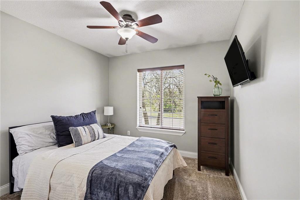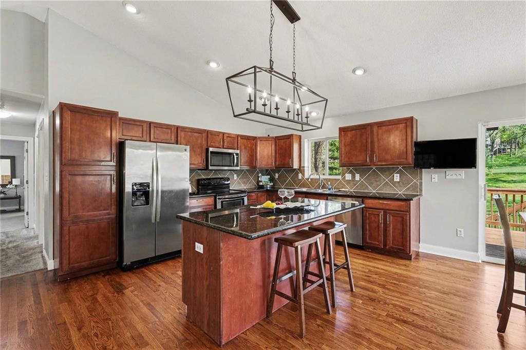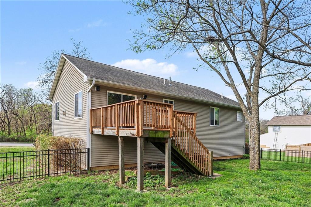 This appealing split-level home sits on an incredible 35,895.91 sq. ft. homesite — approximately .82 acre — right in the heart of Lenexa. Inside, you’ll love the light, open feel with vaulted ceilings, a great room fireplace as the focal point, and a spacious island kitchen with granite countertops and freshly refinished hardwood floors. Step out from the dining area onto the deck and enjoy private views of your expansive homesite. Built in 2005, this home offers an easy-maintenance exterior with vinyl siding and stone trim, plus a level, extra-deep driveway the width of the home, ideal for larger vehicles, sports gear, lawn equipment, and extra parking. With no HOA dues, buyers will appreciate added flexibility for outdoor living, gardens, storage, or possible future outbuilding options, subject to city requirements. The extra-long driveway off 83rd Street even includes an additional parking area. Nature lovers will appreciate the wildlife, the room to roam, and the endless possibilities for creating a private retreat right at home. Another standout feature is the nearby access to the paved Little Mill Creek Trail, leading to dog-friendly Heritage Park, north toward Mill Creek Elementary and Mill Creek Park, and on to Sar-Ko-Par Park and the Aquatic Center for even more outdoor fun.