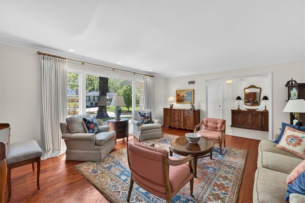 A beautifully maintained ranch home in Mission Hills. This property includes a formal living and dining room, an eat-in kitchen and a family room with vaulted ceiling, fireplace and wet bar. reach doors open to a lovely brick patio surrounded by mature trees and perfect landscaping.