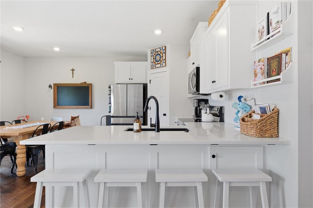 Located on a quiet cul-de-sac in the desirable Bristol Patio Homes community, this like-new 2-story home offers low-maintenance living in a convenient Kansas City location. As you step inside, you’ll find a light-filled, open-concept main level where tall ceilings and modern finishes create a space that feels both inviting and functional. The kitchen, living, and dining areas connect effortlessly, featuring quartz countertops, sleek cabinetry, and a spacious walk-in pantry designed for both everyday living and easy entertaining Upstairs, all three bedrooms are intentionally positioned for privacy, including a well-appointed primary bedroom complete with its own private bath. Every bedroom offers generous closet space with a centrally located second-floor laundry room. This adds a layer of convenience you’ll appreciate daily, no more carrying baskets up and down stairs. The unfinished basement presents an opportunity to expand, offering a blank canvas for a custom home office, fitness studio, or additional living space tailored to your vision. Positioned north of the river, the home provides exceptional access to Interstate 435, placing Downtown Kansas City and Kansas City International Airport within easy reach. Surrounded by scenic parks, walking trails, and highly regarded schools, the setting offers a balance of connectivity and everyday livability. With HOA-provided lawn maintenance and snow removal, the lifestyle here is intentionally effortless—allowing more time to enjoy the home and less time spent on upkeep. A beautifully cared for home ready for its new owner!
