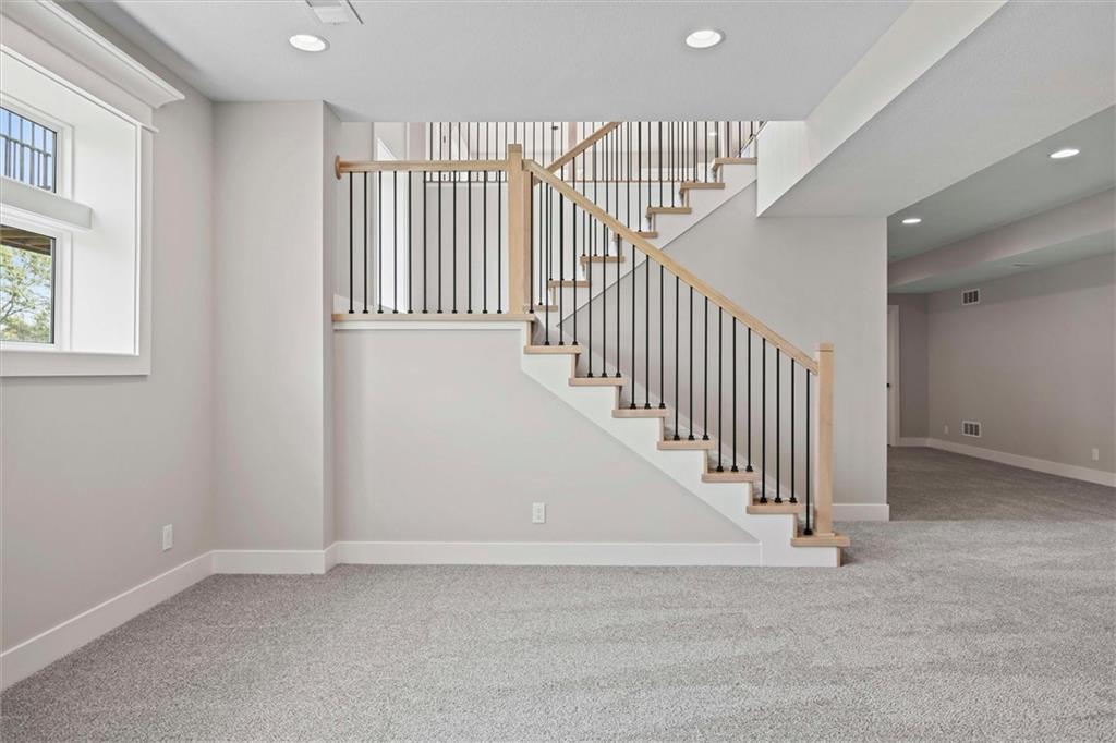 MOVE-IN READY - Discover the exceptional craftsmanship of Lamendola Custom Homes with The Aiden Expanded, located on Lot 99. This stunning 4-bedroom, 3-bathroom reverse-story home offers an impressive blend of style, comfort, and functionality. The main level features a beautifully designed kitchen, an inviting great room, a serene primary suite, a secondary bedroom that can double as an office, a convenient 3/4 bath, and a well-placed laundry room. The lower level expands your living space with two additional bedrooms, a full bathroom, a spacious family room, and an impressive bar complete with a large island—perfect for entertaining. Situated on a daylight lot with a covered deck, this home also includes an oversized garage with 8-foot garage doors for added convenience and versatility. Come experience the quality and elegance this home has to offer!