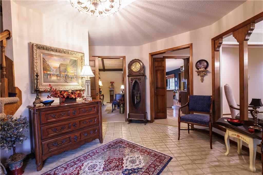 Welcome to 5611 NW Oak Ridge Court, gracefully situated on a quiet cul-de-sac in the sought after community of Platte Woods, no KC EARNINGS TAX This one-owner, custom-designed home offers thoughtfully curated living space—blending timeless craftsmanship with exceptional comfort and scale. Featuring 4 bedrooms and 3 full and 1/2 bathrooms, the home is anchored by a main-level primary suite, creating a private and convenient retreat. Expansive interiors showcase generously sized rooms, abundant natural light, and rich ash wood details, complemented by custom built-ins and spacious walk-in closets—all contributing to a warm yet refined aesthetic. Custom window treatments throughout enhance both style and privacy, adding a finished, high-end touch to every space. Designed for both everyday living and elevated entertaining, the home features a wet bar and full bar setup, with bar stools included, creating a seamless hosting experience. The finished lower level is an entertainer’s dream—complete with a pool table that stays with the home, offering a true turnkey recreation space. Comfort is maximized with zoned HVAC systems, ensuring efficient, customized climate control throughout. Car enthusiasts and hobbyists will appreciate the three oversized garages, offering ample room for vehicles, storage, or workspace. Following a recent hail storm, a new roof, screens, and exterior paint will be completed prior to closing, further enhancing the home’s value and curb appeal. Offering this one owner home in one of Platte Woods’ most sought-after locations, this property is thoughtfully positioned to deliver exceptional value for a custom property of this caliber. Opportunities like this—where quality materials, custom finishes, space, and location align—are increasingly rare at this price point.