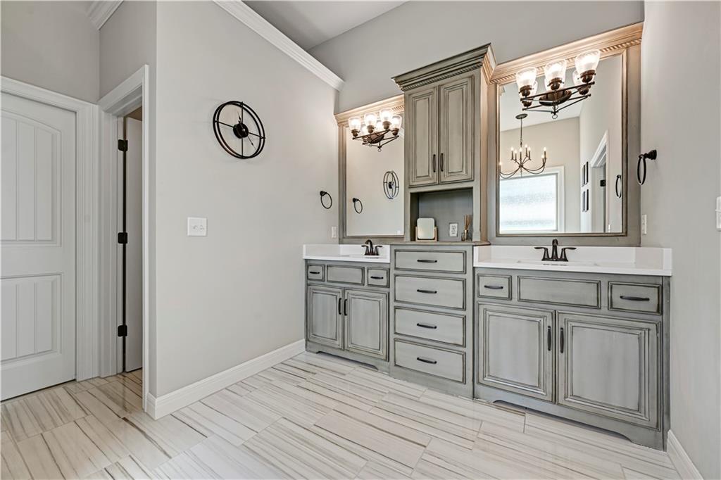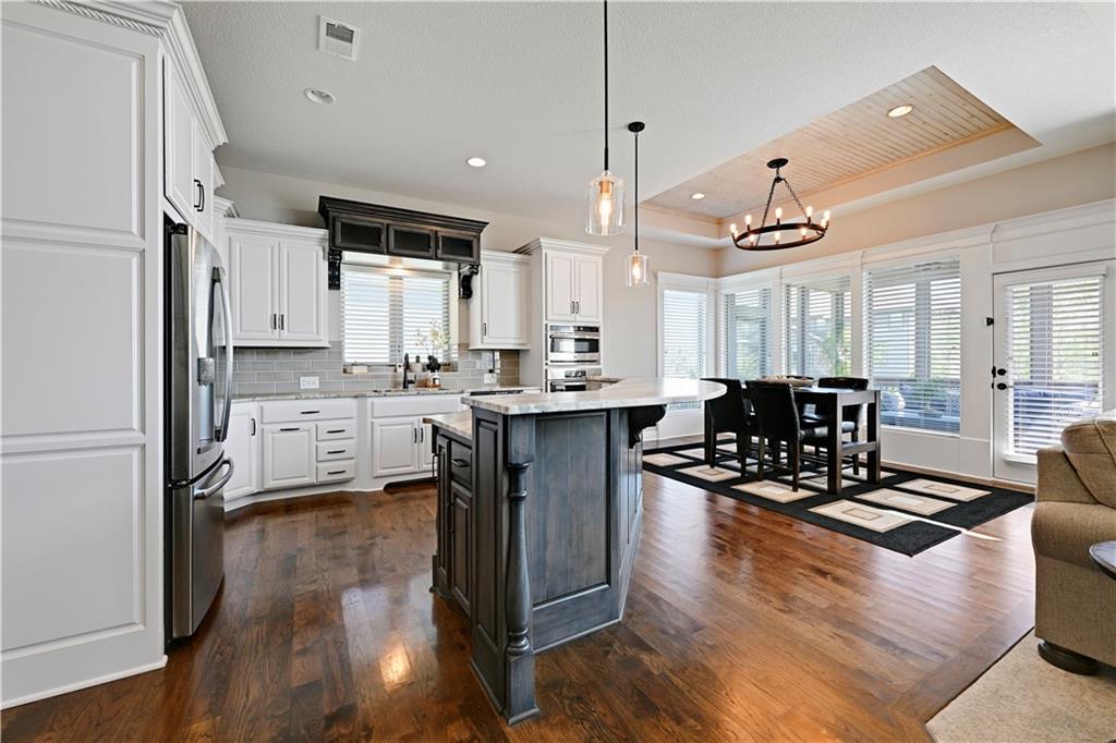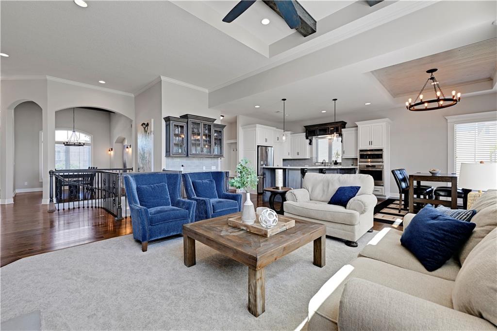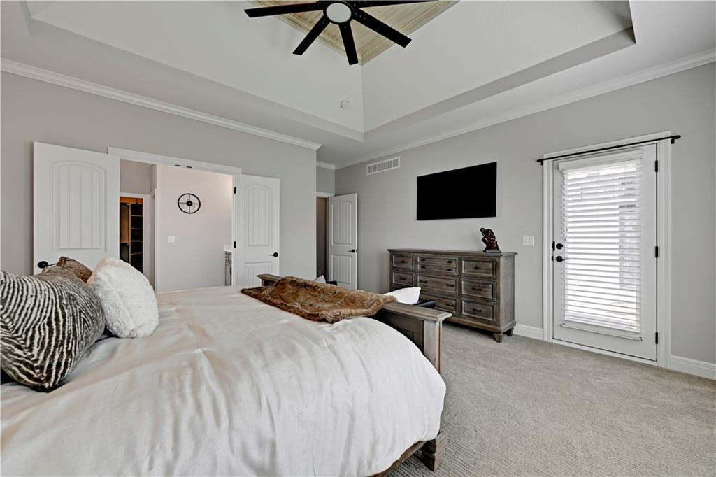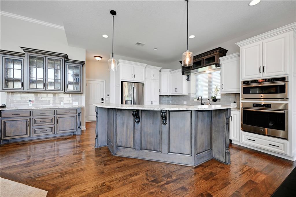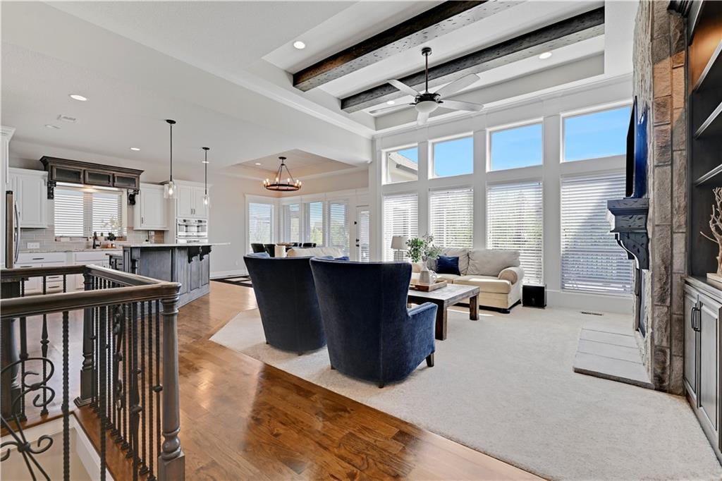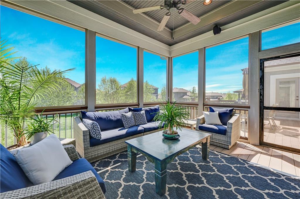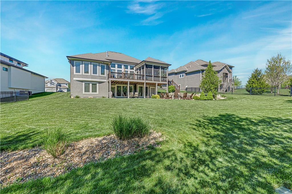 Experience refined living in this impeccably maintained reverse 1.5-story residence, showcasing exceptional curb appeal, lush landscaping, and a striking presence with a tall front door, covered porch, and elegant stone columns. Ideally positioned with a west-facing front for quicker winter snow melt and an east-facing backyard that offers cool, shaded evenings. The thoughtfully designed main level features a luxurious primary suite and a versatile second bedroom or office with access to a full bath. Entertain in style in the formal dining room or enjoy casual meals in the bright breakfast area. The gourmet island kitchen is a chef’s dream, complete with a hidden walk-in pantry that blends seamlessly into the space. Step outside to enjoy a screened porch and three separate decks, creating multiple outdoor living areas perfect for relaxing or hosting. The private backyard retreat includes a dedicated fire pit area, offering both comfort and seclusion. A dramatic curved staircase leads to the finished lower level, featuring an expansive rec/family room with a bar and a state-of-the-art in-ceiling 5-speaker surround sound system, delivering an exceptional movie and entertainment experience. The lower level also includes two additional bedrooms, 1 full and 1 half bath. A bonus room under the suspended garage provides flexible space for a gym, hobby room, or extra storage. Additional highlights include a suspended garage, full epoxy garage floor with built-in cabinets (included), and a convenient laundry/mud room off the garage entrance. Residents enjoy premier community amenities, including a clubhouse with kitchen and fireplace, swimming pool, play area, exercise room, fire pit, BBQ and picnic areas, along with scenic lakes offering fishing for residents.