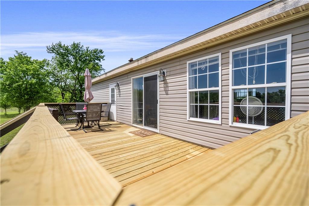 Looking for space, privacy, and a place to truly unwind? This 16.6-acre property offers the perfect escape from town while still keeping you conveniently connected with a paved road leading you back when needed. Tucked away with a long private drive, this well-maintained 3 bedroom, 2 bathroom home (manufactured in 2007) welcomes you with a peaceful setting where neighbors are few and far between. Guests will enter through the front deck, while friends and family will naturally gather on the spacious back deck perfect for relaxing evenings with easy access through the sliding glass door. Inside, the layout is both functional and inviting. The primary suite sits on one end of the home, with two additional bedrooms and a full bath on the other. The open kitchen with bar seating keeps everyone connected, and the dining area offers plenty of room for a large table. The seller has recently added new flooring throughout most of the home, giving it a fresh, updated feel. Outside, you’ll find plenty of space to spread out. Kids can enjoy the yard and swing set while you take advantage of the 24x30 shop perfect for projects, storage, or hobbies. The acreage is also ideal for animals, making it easy to create the lifestyle you’ve been dreaming of.