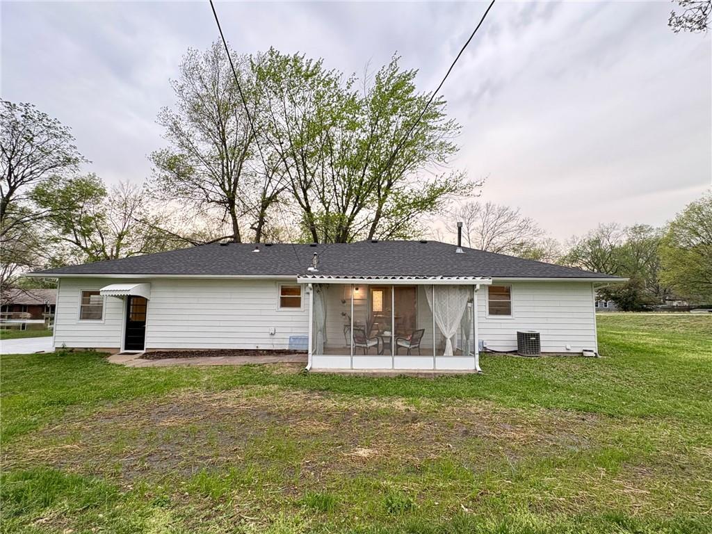 Welcome home! This beautifully maintained mid-century ranch is perfectly situated on a spacious corner lot in a desirable Harrisonville location close to schools, shopping, and parks. This move-in ready home offers a wonderful blend of classic charm and modern updates throughout. Recent improvements include fresh interior and exterior paint, updated yard drainage, and a roof less than three years old. Major mechanicals have been well maintained with a recently serviced HVAC system (including updated control module), a newer hot water heater, and a sump pump approximately three years old. Interior updates shine with new carpet in the living room, refinished hardwood floors in all bedrooms, new ceramic tile in the bathroom, and luxury vinyl plank flooring in the kitchen and dining areas. The kitchen also features a newer oven, making it both functional and inviting. Enjoy year-round comfort in the bright four-season room just off the kitchen—perfect for relaxing or entertaining. Additional upgrades include epoxy-coated floors in the basement, garage, and utility shed, along with a newly installed sidewalk and driveway built with durable, reinforced concrete for long-term value. The unfinished basement provides excellent opportunity for future expansion—ideal for a recreation room, home gym, or additional living space.
