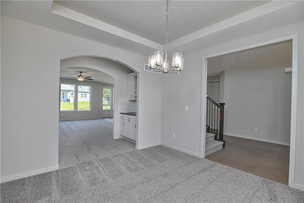 This stunning 2-story Harlow 5 home offers 5 bedrooms, 4 baths, and a spacious 3-car garage in the highly sought-after Prairie Farms community. From the moment you enter, you’ll be impressed by the beautiful turned staircase and gleaming hardwood floors in dining room, entry, kitchen and great room. The formal dining room features built-in cabinetry on both sides and flows seamlessly into a bright, open great room with a cozy fireplace and abundant natural light. The adjacent dining area and chef’s kitchen are an entertainer’s dream—highlighted by hardwood floors, granite countertops, a large center island, apron-front sink, painted custom cabinets with soft-close doors and drawers, upgraded hardware, stainless steel appliances, built-in microwave, and a generous walk-in pantry. A main-level bedroom with a closet offers flexibility as a guest suite, office, playroom, craft space, or more. Upstairs, the luxurious owner’s suite boasts a spa-like bathroom with double granite vanities, tile floors, a free-standing soaking tub, and a walk-in tiled shower. A spacious walk-in closet connects directly to the conveniently located laundry room. Two secondary bedrooms share a Jack & Jill bath, each with its own private vanity. A fourth upstairs bedroom features its own private bath and walk-in closet. Additional highlights include a huge unfinished basement with abundant storage potential, an in-ground sprinkler system, and more. Community amenities include a large swimming pool, cabana, playground, and walking trails. Plus, Prairie Farms is adjacent to the newly renovated Lake Olathe, offering paddleboarding, fishing, hiking, and more—making this a perfect place to call home! Photos are of previous homes and may show some optional features.
