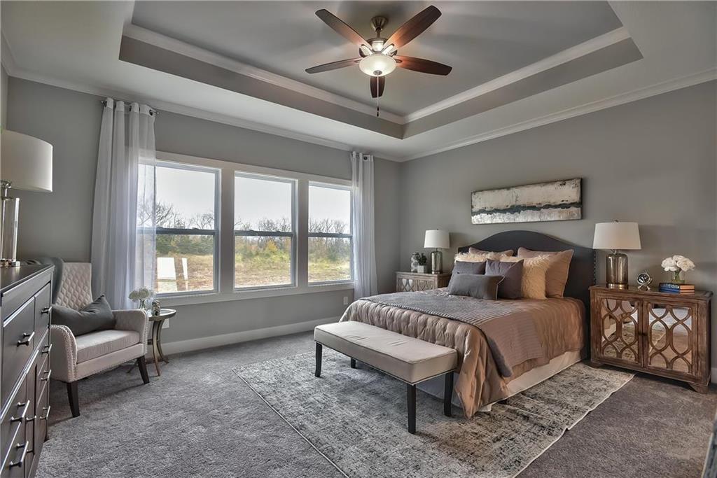 Want some privacy? This Dakota reverse sits on a beautiful walk out lot backing to trees. Nice hardwood floors run throughout the entry, great room, dining area, kitchen and mud room. The great room includes a stunning fireplace and wall of windows giving you lots of natural light. Walk out from the dining area to a wonderful covered deck with a peaceful view of the treed backyard and greenspace. Center island kitchen with granite countertops is a cook's delight featuring an apron sink, custom cabinets with cabinet hood, upgraded cabinet hardware with soft closing drawers & doors, built in microwave, undercabinet lighting, stainless appliances and a large walk in pantry. The owner's suite with its vaulted ceiling and wall of windows leads into a lovely bath with separate granite vanities, walk in tiled shower, separate tub and walk in closet. Laundry room is connected to the master bath for your convenience. The second bedroom on the main floor is a great multipurpose room for a guest room, craft room, office, etc. ice sized mud room with large boot bench,, coat closet and a 3/4 bath just off the back hallway. Follow the U-shaped staircase down to the rec room with wet bar and plenty of room for a home theater plus a game table. Walk out from the rec room to enjoy the private backyard. Two more bedrooms and bath complete the finished lower level. Lots of storage in the unfinished basement. Storm room included for your safety in case of a storm. Three car garage and sprinkler system. Prairie Farms has a great community pool, play area and walking trails. It's a great place to call home.