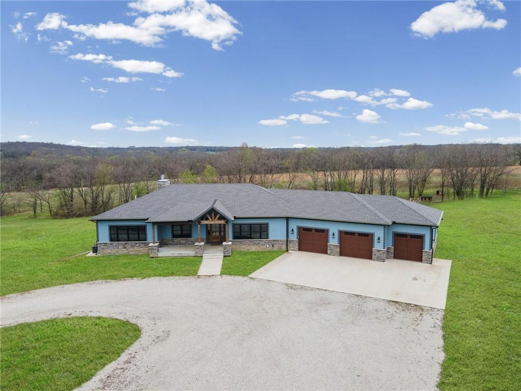 Luxury living meets premier hunting and income-producing land—this one-of-a-kind 189-acre estate offers an unmatched opportunity for the serious outdoorsman or anyone seeking a private rural retreat with the modern comforts this stunning home offers. Meticulously designed with 4,800 square feet of thoughtfully curated living space, where every detail reflects quality and intention. From the moment you step inside, soaring vaulted ceilings and an expansive great room create a striking first impression, seamlessly flowing into a custom chef’s kitchen featuring hand-built cabinetry, quartz countertops, and a spacious walk-in pantry. This home offers 5 bedrooms and 3.5 baths, including a timeless primary suite designed for comfort and relaxation. A fully finished walk-out basement with a wet bar provides the ideal space for entertaining guests or enjoying quiet evenings at home. Function meets convenience with an oversized 3-car attached garage, offering ample room for vehicles, storage, and weekend projects. A whole-house Generac generator ensures uninterrupted comfort and peace of mind, no matter the conditions. Step outside and experience what truly sets this property apart. The 189 acres offer a diverse landscape designed for both recreation and return. With abundant wildlife, this farm is a prime setup for deer and turkey hunting, giving you the chance to build your own trophy legacy right out your back door. A mix of tillable acreage and CRP ground provides consistent income potential while enhancing habitat and land value. Experience the serenity of country living without compromising luxury—this is a property you have to see to believe.