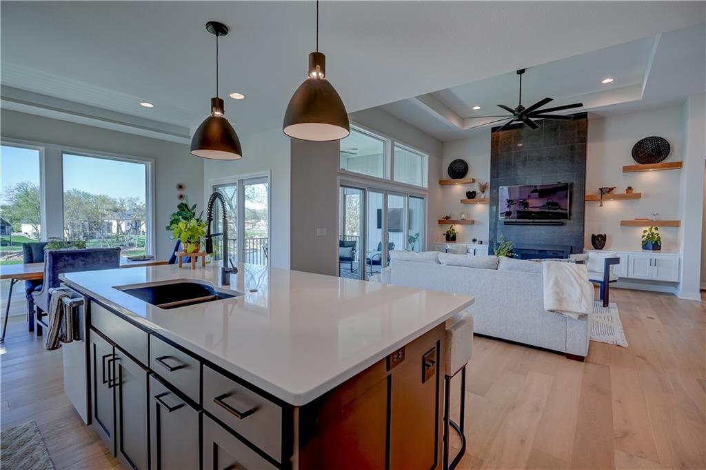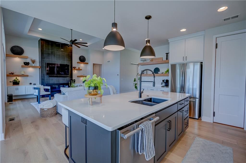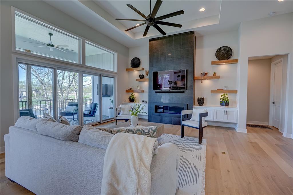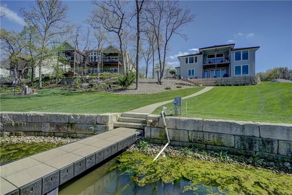 Stunning reverse 1.5 story lakefront home tucked away on a private cul-de-sac lot with awesome water views and direct lake access. This newer 4-bedroom, 3.5-bath home offers an open and spacious layout designed for both everyday living and entertaining. The kitchen is beautiful with custom cabinets, quartz countertops, & Stainless appliances. Enjoy private lake views from the main living areas and step out onto the covered deck to relax or take in the scenery. The finished walkout basement provides additional living space, bedrooms, and easy access to the backyard oasis. Beautifully maintained with extensive landscaping, irrigation system, and a sidewalk leading to your private dock for effortless days on the water. House is located in a cove so perfect for fishing, swimming, and floating with no boat traffic. A rare opportunity to own a move-in ready waterfront home with luxury features, privacy, and incredible outdoor living.