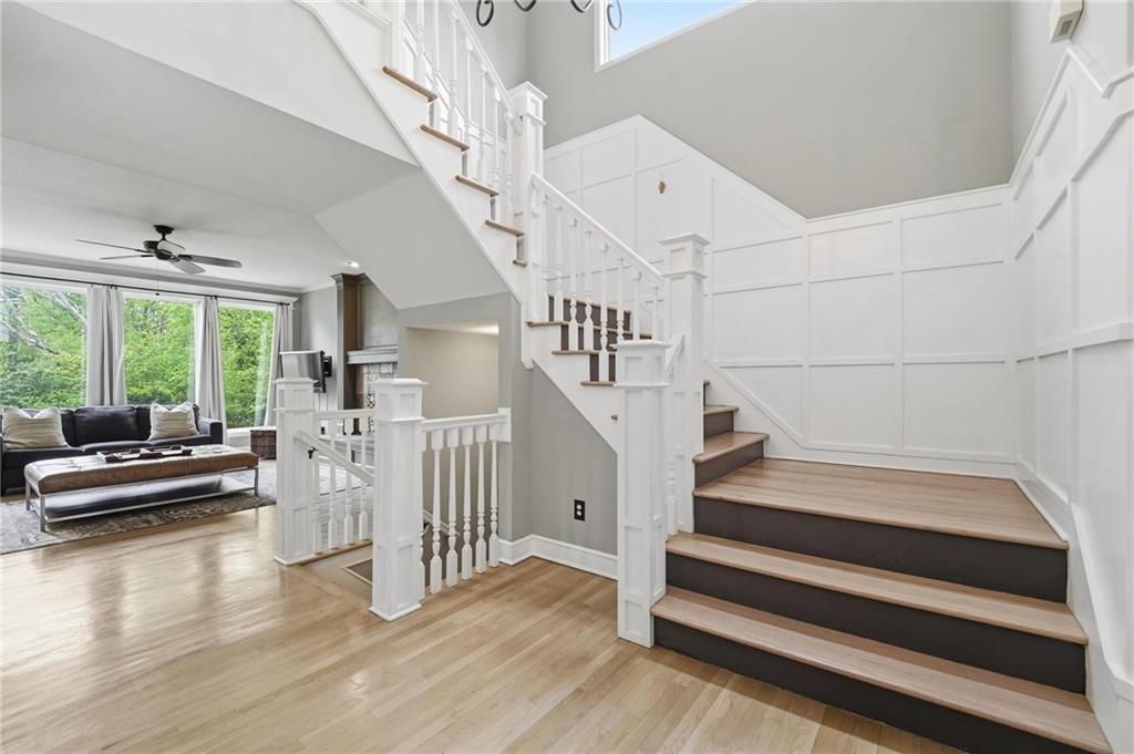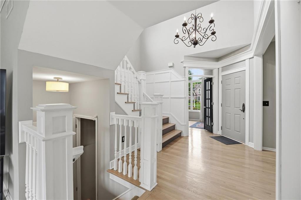Step inside and you’ll love how easily the main level flows—from the open foyer to a private front office, into the living and dining spaces, all tied together with gorgeous hardwood floors. The kitchen is truly the heart of the home, with an angled island, granite countertops, shaker cabinets, stainless appliances, and charming built-ins. Whether you’re hosting or just enjoying a quiet night in, the two stone fireplaces (gas and woodburning) add the perfect cozy touch. Just off the kitchen is the kind of everyday functionality everyone wants—a mudroom, laundry with sink, great storage, and a stylish half bath. Upstairs, you’ll find four spacious bedrooms. The primary suite is a true retreat with a sitting area, vaulted ceiling, and a spa-like bath featuring a large shower, double vanities, and an oversized walk-in closet with natural light. Secondary bedrooms all offer walk-in closets, ceiling fans, and beautifully updated bathrooms, including one private en-suite and a fully renovated shared bath. One even includes a built-in desk—perfect for work or homework. And then… the lower level. This is where the fun really happens. Glass French doors create a private den with a bonus closet, plus there’s a flex room (gym, craft space, guest room—you decide). The family room is spacious but still feels cozy, complete with a game closet. A fully remodeled bath adds even more convenience, and the showstopper. An AMAZING movie theater space that can be closed off for the full experience. You’ll also find a huge, well-lit storage area with extensive shelving (because we all need that space). Big-ticket updates are already taken care of—new HVAC in 2023 and a new roof in 2024. All of this, plus award-winning schools nearby. It’s the kind of home that just makes sense the second you walk through the door.