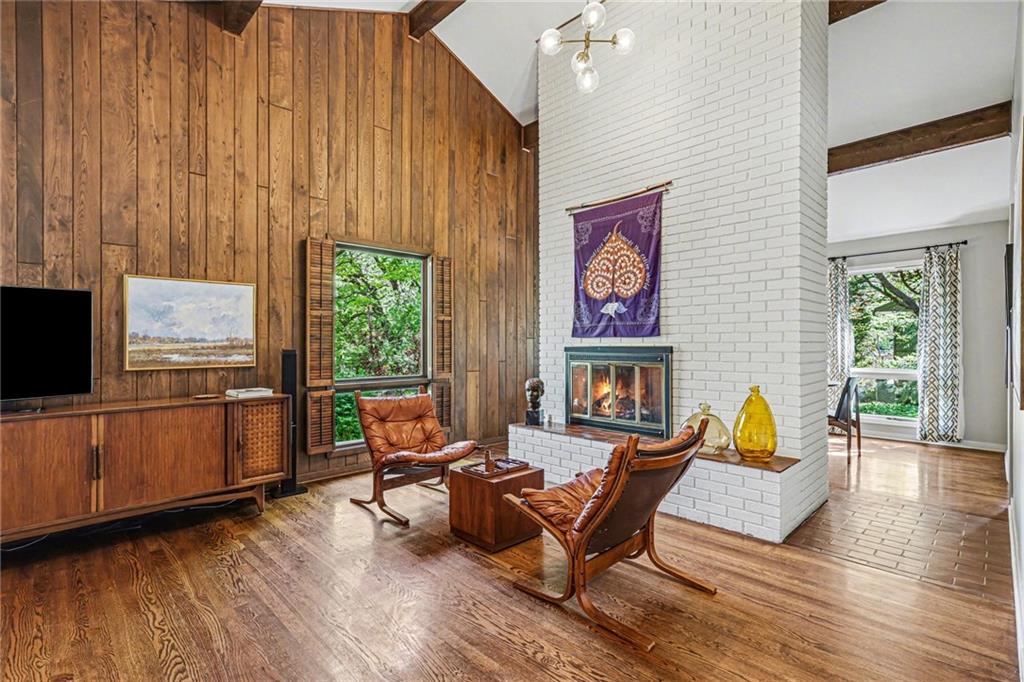 Welcome home to this Prairie Village midcentury ranch home, available on the market for the first time in its history. One family loving designed and built the home in 1964 and has enjoyed decades in this oasis nestled into the heart of PV ever since. A covered front stoop and formal entryway welcome you with design nods to midcentury roots. Enter to the stunning living room with warm wood detail and statement, one-of-a-kind walk around fireplace. Oversized windows welcome in natural light. Easy flow into the dining room finds more light and bright space with a wall of floor to ceiling windows. Exposed brick fireplace offers texture and visual interest. Kitchen is meticulous with updated appliances, double ovens, plenty of cabinet and counter space for prep and entertaining and a breakfast nook you won’t want to leave with beautiful views of the backyard. Gleaming hardwoods throughout and peaceful views from every room. 3 bedrooms on the main level that include a primary bedroom with an ensuite bath. Don’t miss the bedroom windows that make simple bedrooms feel intentional and inviting. Large hall bathroom. Basement is the full footprint of the home and finished with rec room, music and workout space with built-ins, craft/hobby area plus generous storage area and workshop. Thoughtful and intentional design continues in the backyard. A natural landscape fence offers privacy while keeping nature and serenity at the forefront. Hardscaped paths invite you to slow down and enjoy the surroundings. Front circle driveway leads to a two car garage tucked into lush greenery. The combination of unique design, the weaving of nature with the home’s interior and the opportunity to call the heart of Prairie Village home awaits you here. This home offers a special opportunity for a lifestyle that doesn’t come around everyday. Don’t wait to make this one yours. **OFFER DEADLINE of 4/26 at 1pm**