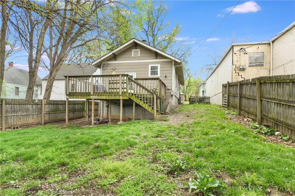 Welcome to this charming 2 bedroom 1 bath bungalow built in 1948. It’s just waiting for you to make it yours. Open living room and dining room area flows into the kitchen. Lots of natural light throughout and character with exposed brick in the kitchen. You will love the updated bathroom. Basement is huge and brimming with opportunity. There’s a nearly finished room that will add square footage and options. Backyard is fenced and has a large deck. Perfect starter home or investment opportunity. Easy access to downtown Leavenworth and Fort Leavenworth. Don’t miss your opportunity, book your showing today.