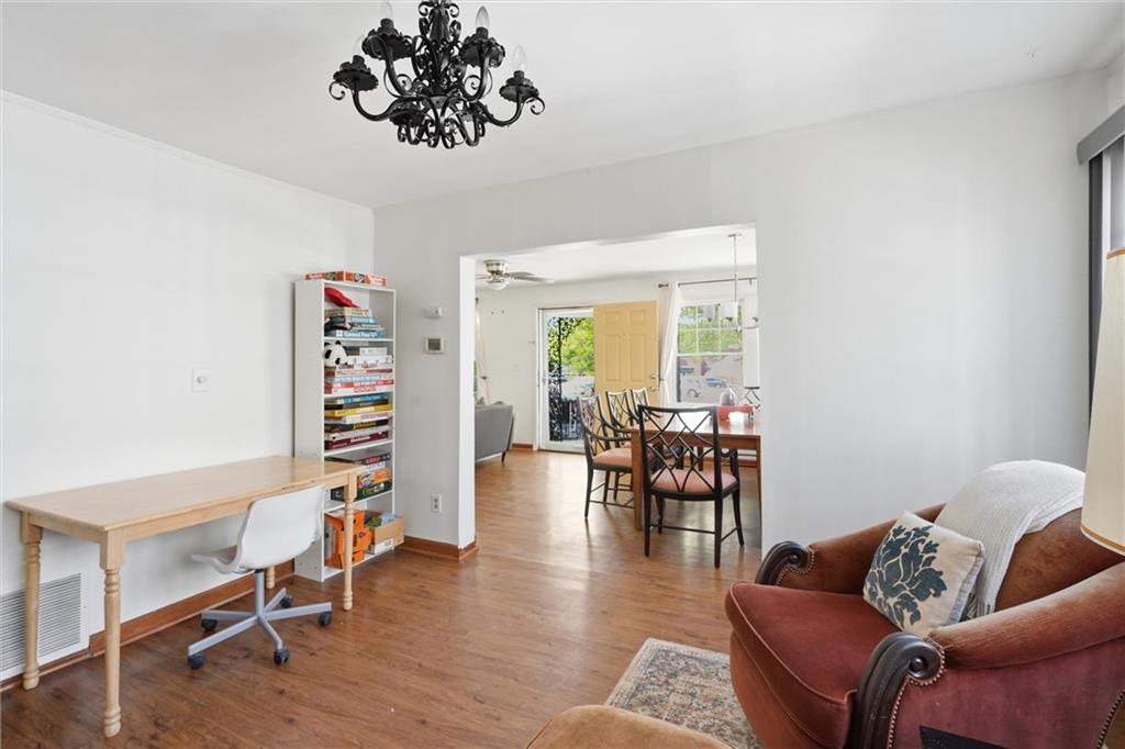Charming Brookside bungalow with 3 bedrooms, a welcoming screened-in porch, and a 2-car detached garage with convenient mudroom entry. This home features an easy-flow floor plan with a cozy fireplace in the living room, and generously sized bedrooms. The upstairs third bedroom offers flexible space—perfect for a home office, media room, or guest retreat. Move-in ready and full of character—just unpack and enjoy!